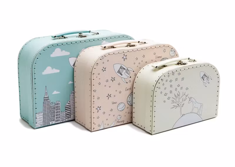 En vackert aprikosfärgad väska med läckert rymdmotiv.