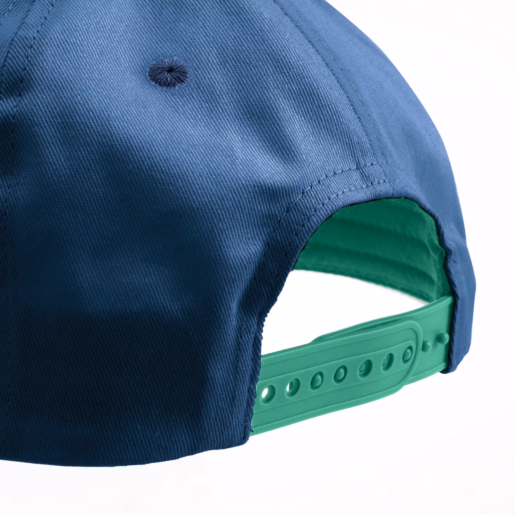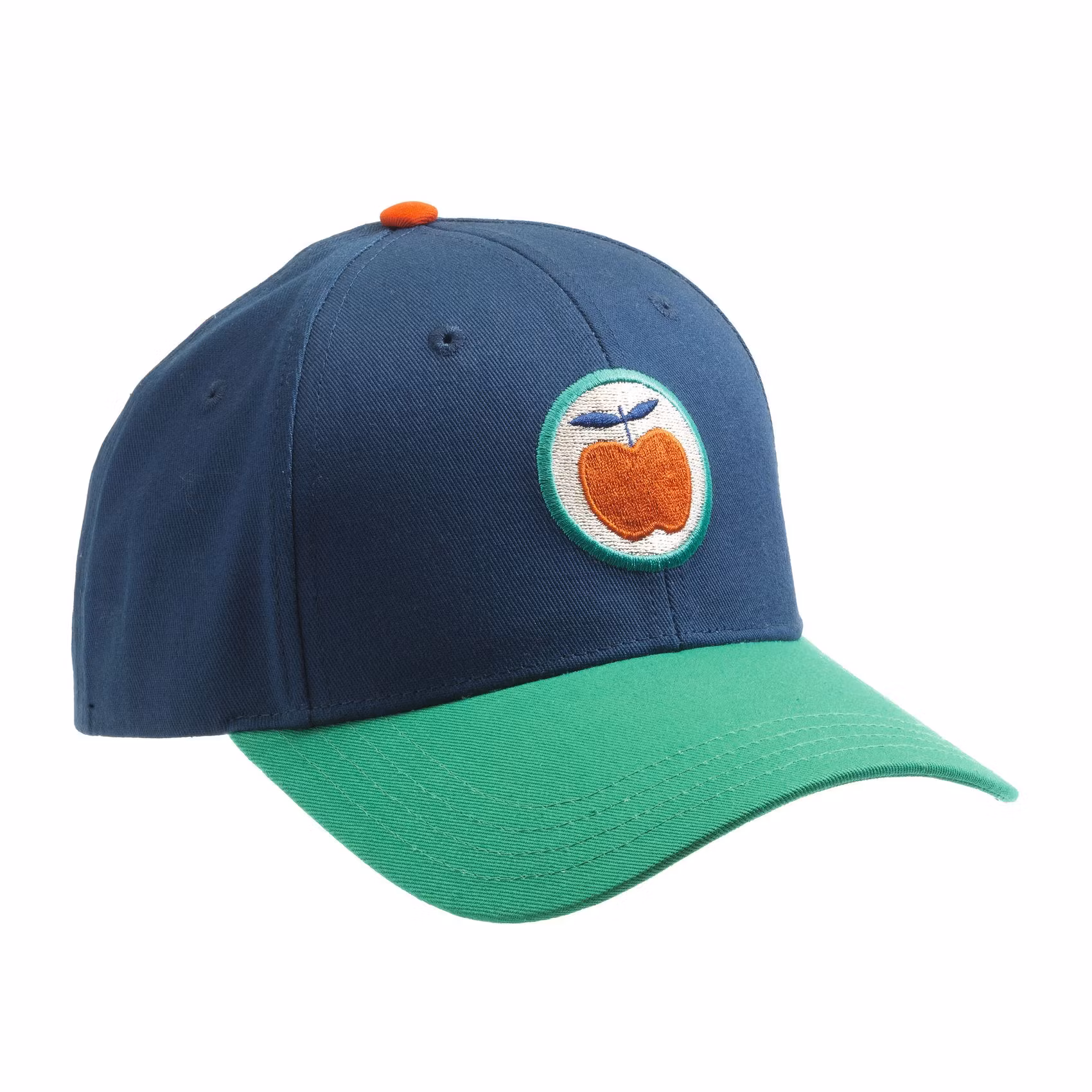 til möter funktion i denna barnkeps av bomull i marinblått och grönt, vars justerbara storlek säkerställer en bra passform för alla tillfällen och äventyr.
