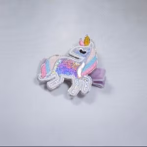 Hårklämma täckt i sammet med en söt enhörning i silver