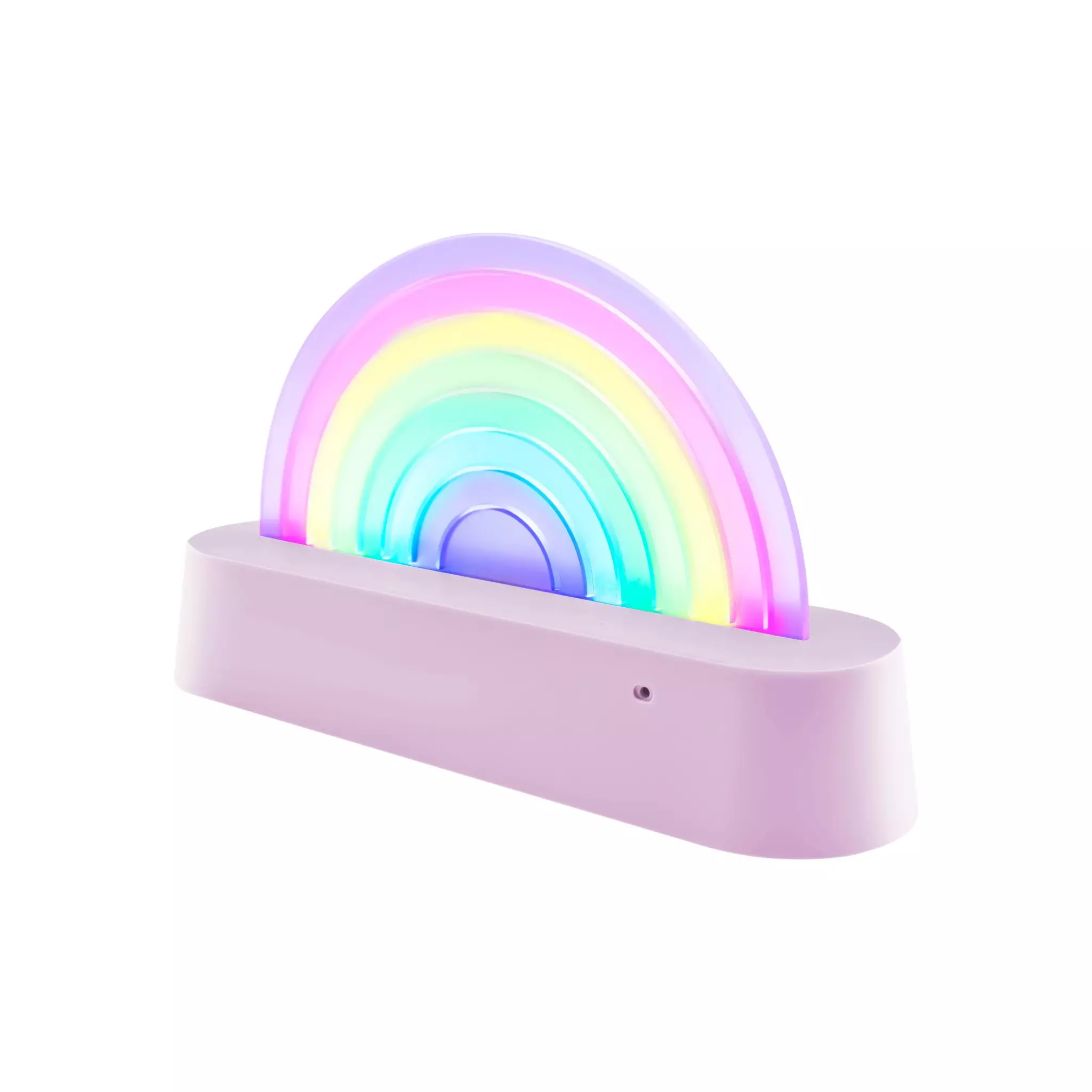 Denna charmiga regnbågslampa lyser i flera färger synkroniserat med musik och ljud. Perfekt för att skapa en underhållande atmosfär till karaokekvällarna eller bara för att lysa upp stämningen.