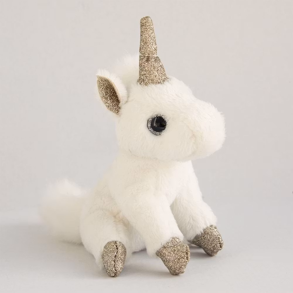 En mycket fin nyckelring med en vit enhörning, som har en mjuk och fluffig vit päls och gnistrande glitterögon.