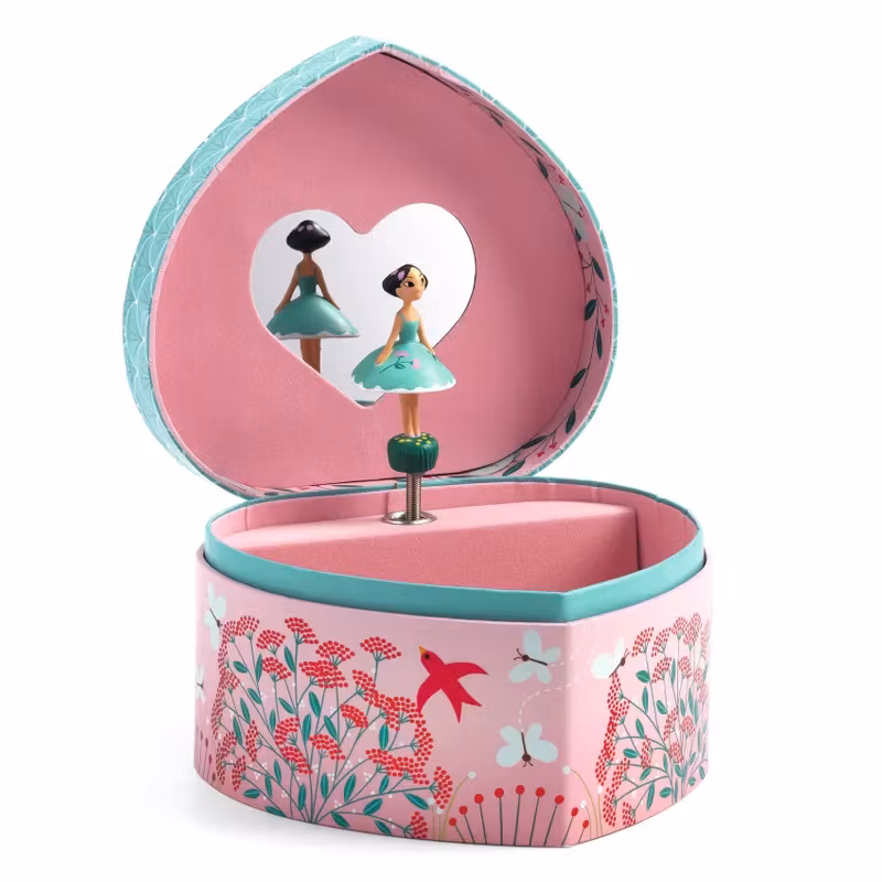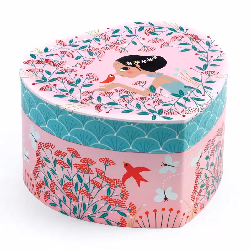 Ett vackert illustrerat och hjärtformat kombinerat smyckeskrin och speldosa som är perfekt att förvara smycken eller hemligheter i.