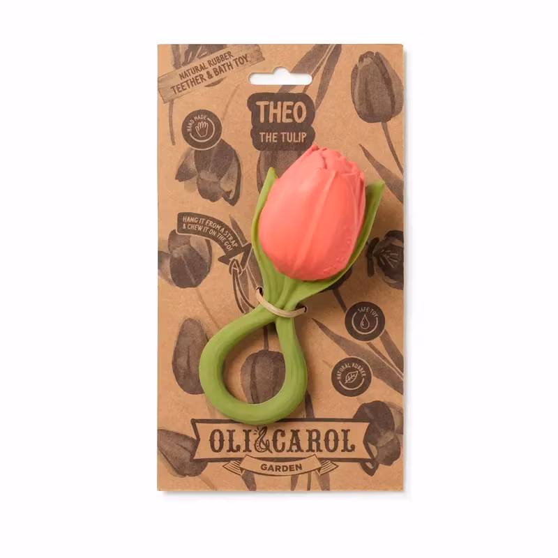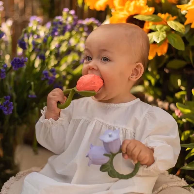 Denna söta tullipan är en sensorisk bitleksak som funkar lika bra till badet. Eftersom den är tillverkad i ett stycke utan hål, är den 100% fri från bakterier och säker för ditt barn att leka med och tugga på.