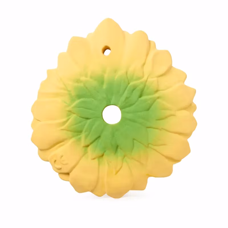 Denna solrosen är en söt sensorisk bitleksak som funkar lika bra som badleksak. Eftersom den är tillverkad i ett stycke utan hål är den 100% fri från bakterier och säker för ditt barn att leka med och tugga på. Den är lätt att greppa och hjälper även till att lugna barnets tandkött under tandgenomträngning.