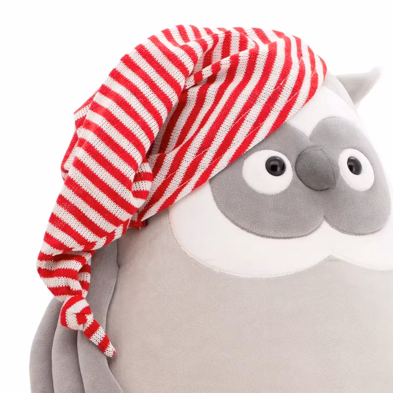 En stor och gosig uggla med en lång, randig nattmössa på huvudet - den perfekta accessoaren för en fågel som försöker sova hela dagen.