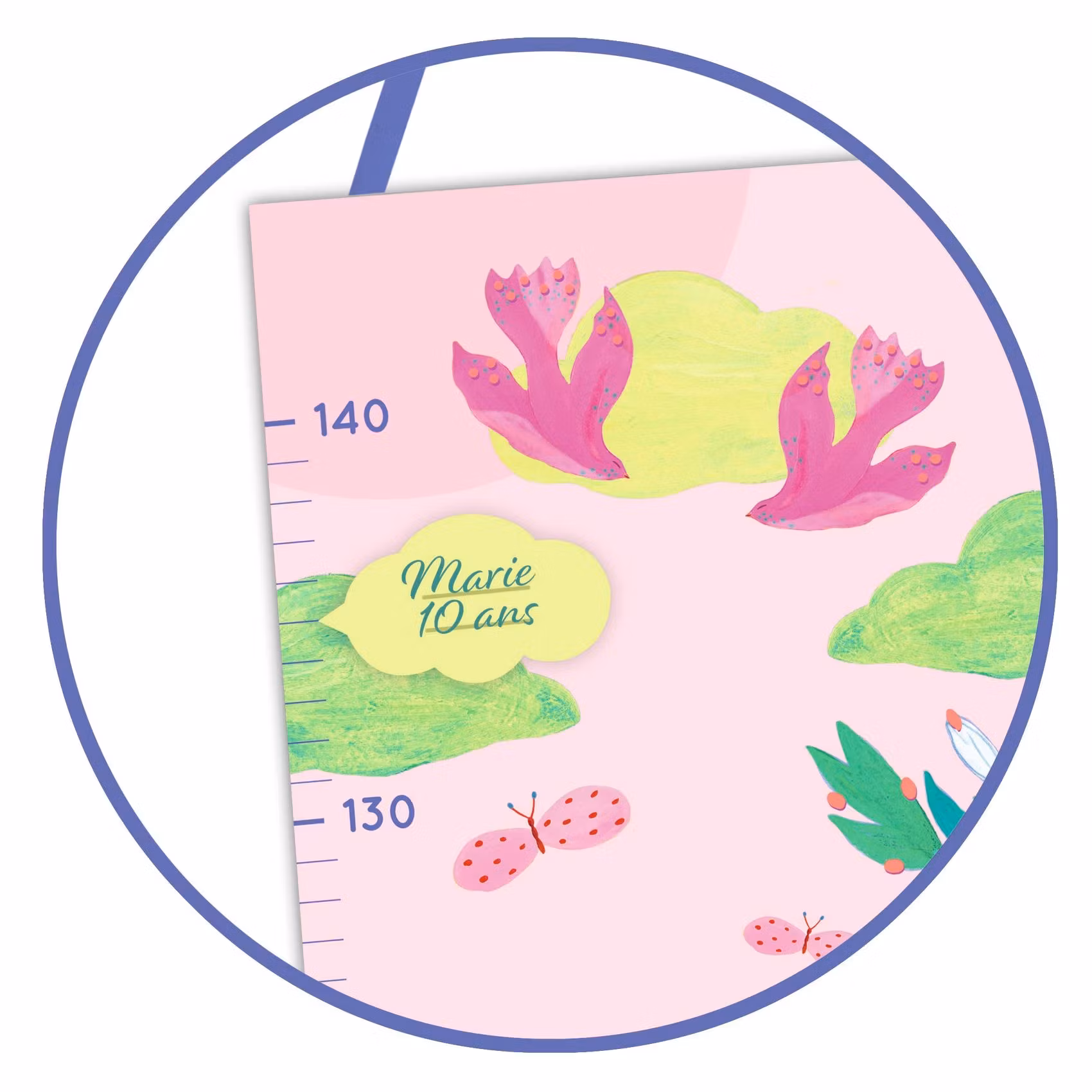 En snygg dekoration som kan passa i de flesta rum och där ni kan mäta och markera allt eftersom barnet eller barnen växer (upp till 140 cm eller ungefär 10 år).