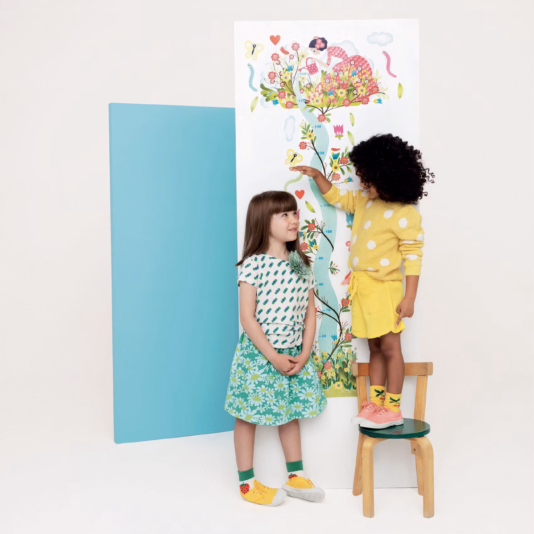 Du får också mindre klistermärken med plats att skriva t.ex. datum och barnets namn, som du sen kan sätta upp vid barnets aktuella höjd.