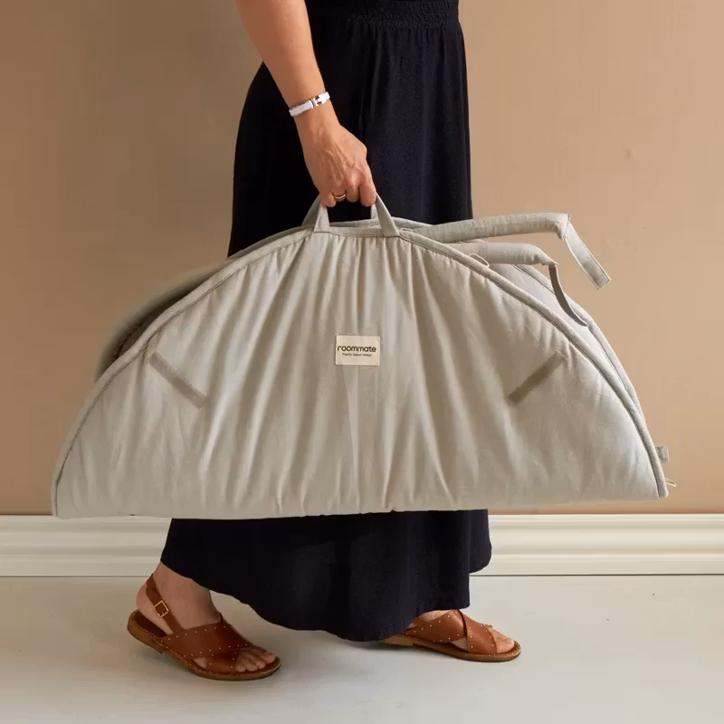 Runt kanten på lekmattan finns ytterligare öglor som kan användas för att fästa leksaker samt en tryckknapp som håller ihop mattan när man viker ihop den för förvaring och ett bärhandtag. När baby gymmet inte används håller ett band av tyg ihop de båda bågarna så att de kan förvaras inuti den hopvikta lekmattan.