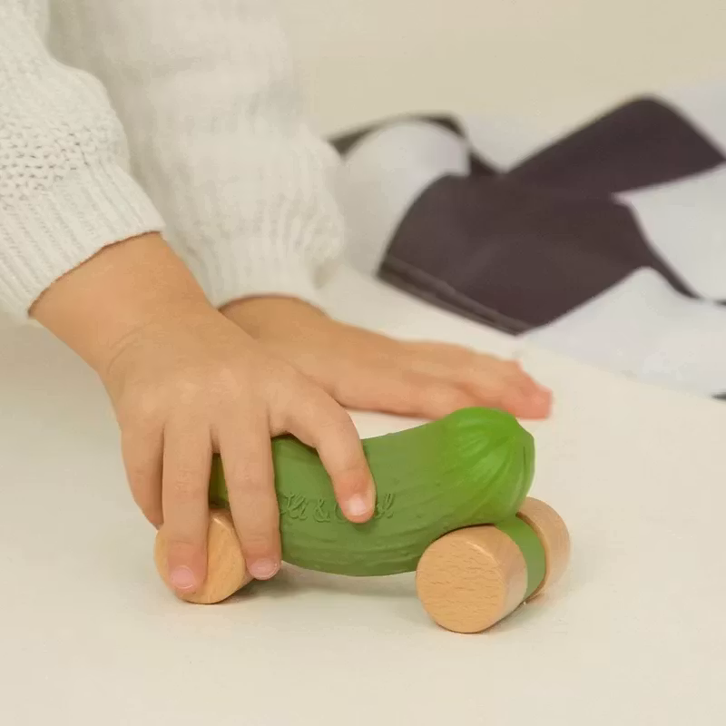 En design inspirerad av gurka, handgjord med naturgummi och FSC-trä.