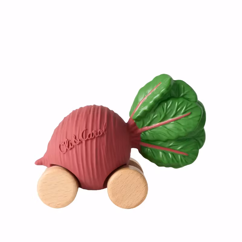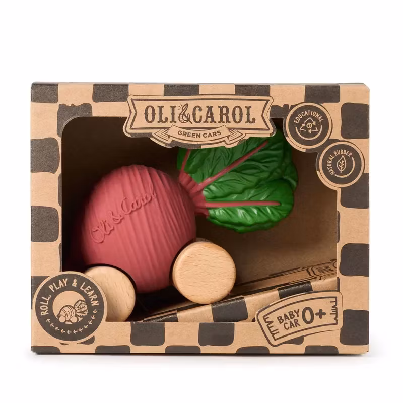 En design inspirerad av rödbeta, handgjord med naturgummi och FSC-trä. Denna leksaksbil främjar interaktivt lek, kognitiv utveckling och sociala färdigheter.