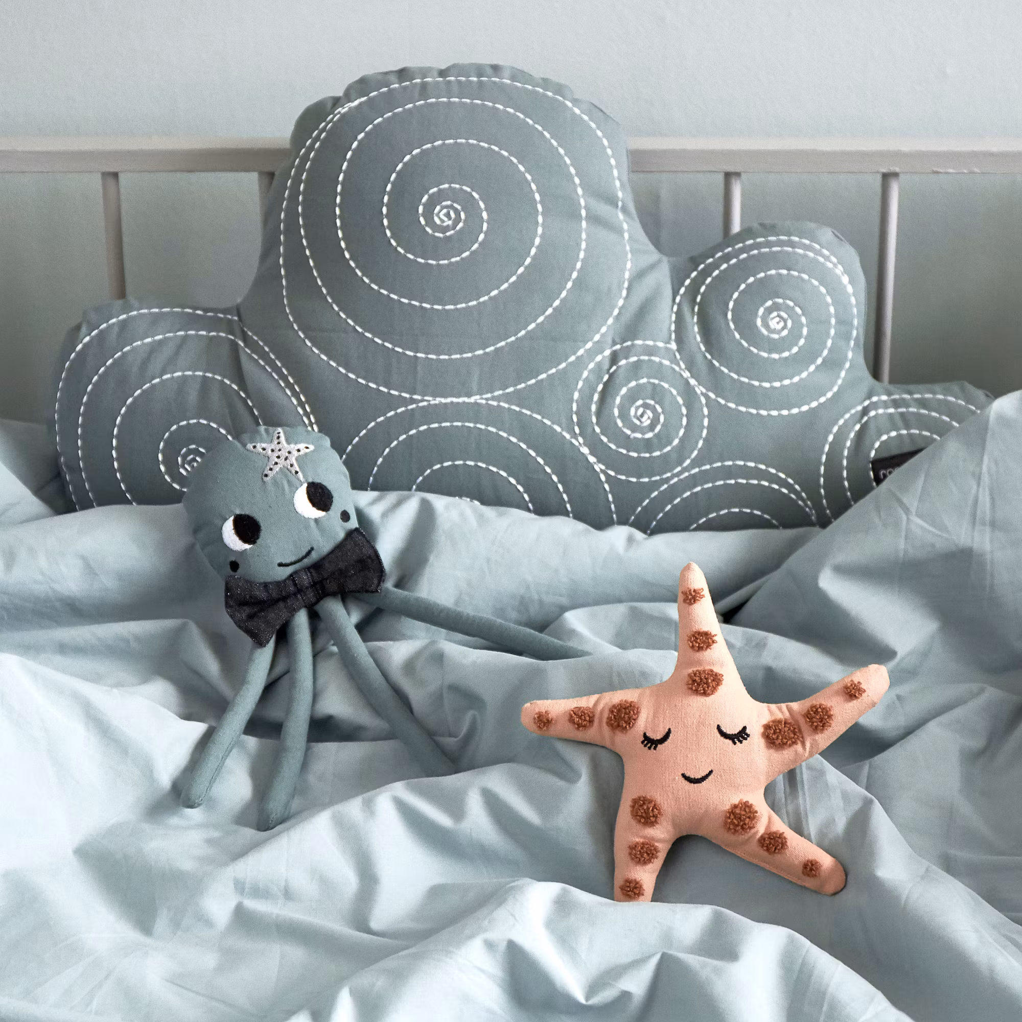 Broderad design på ekologisk bomull med polyesterfyllning.
