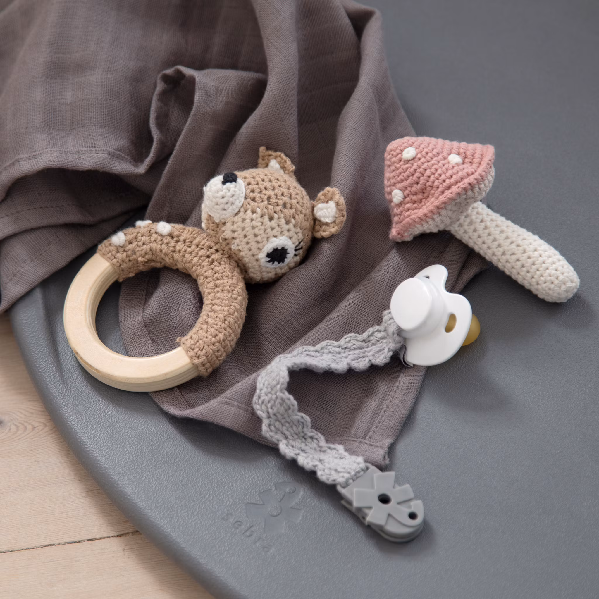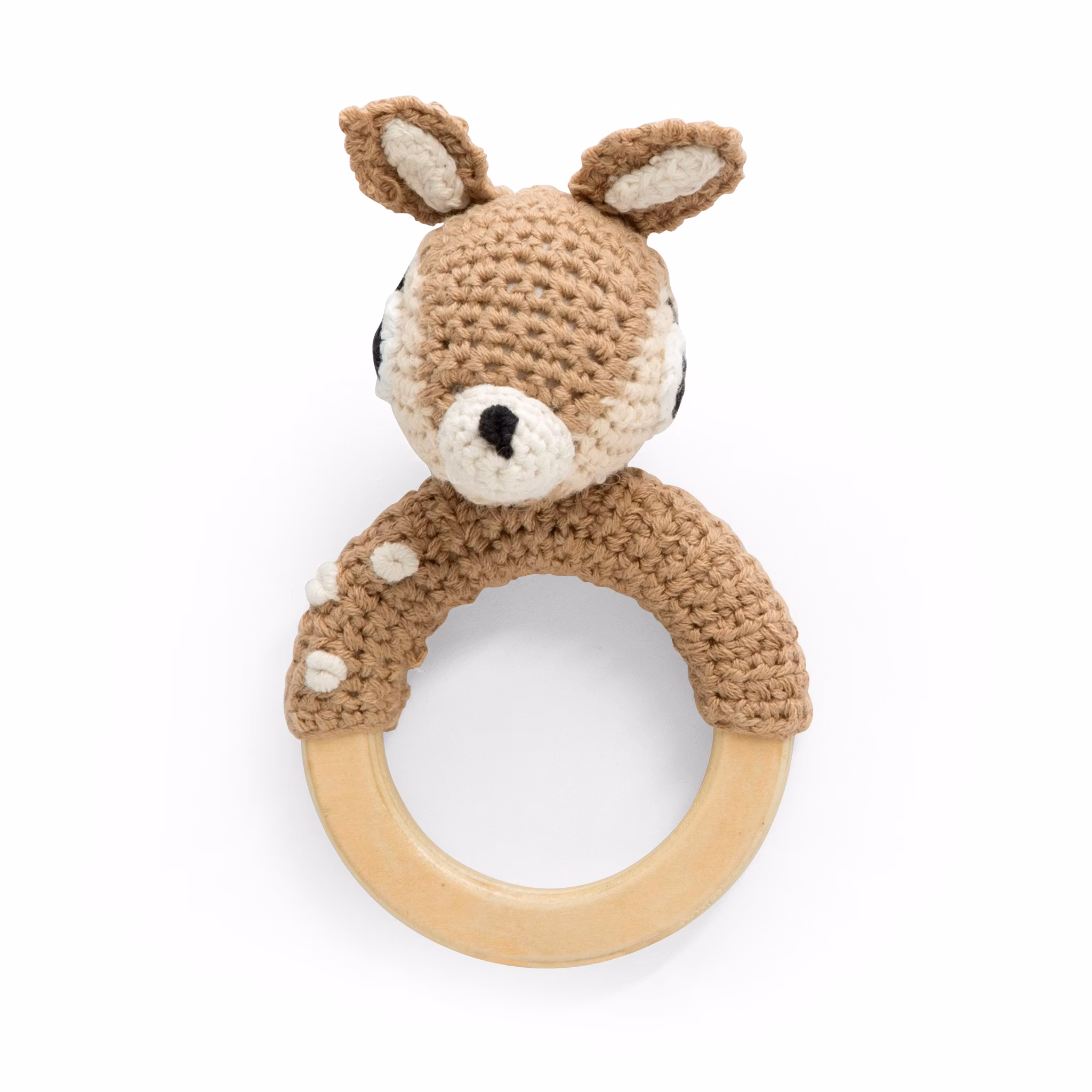 Sebra- Crochet rattle, Dixi on ring, Forest, light brown/skallra