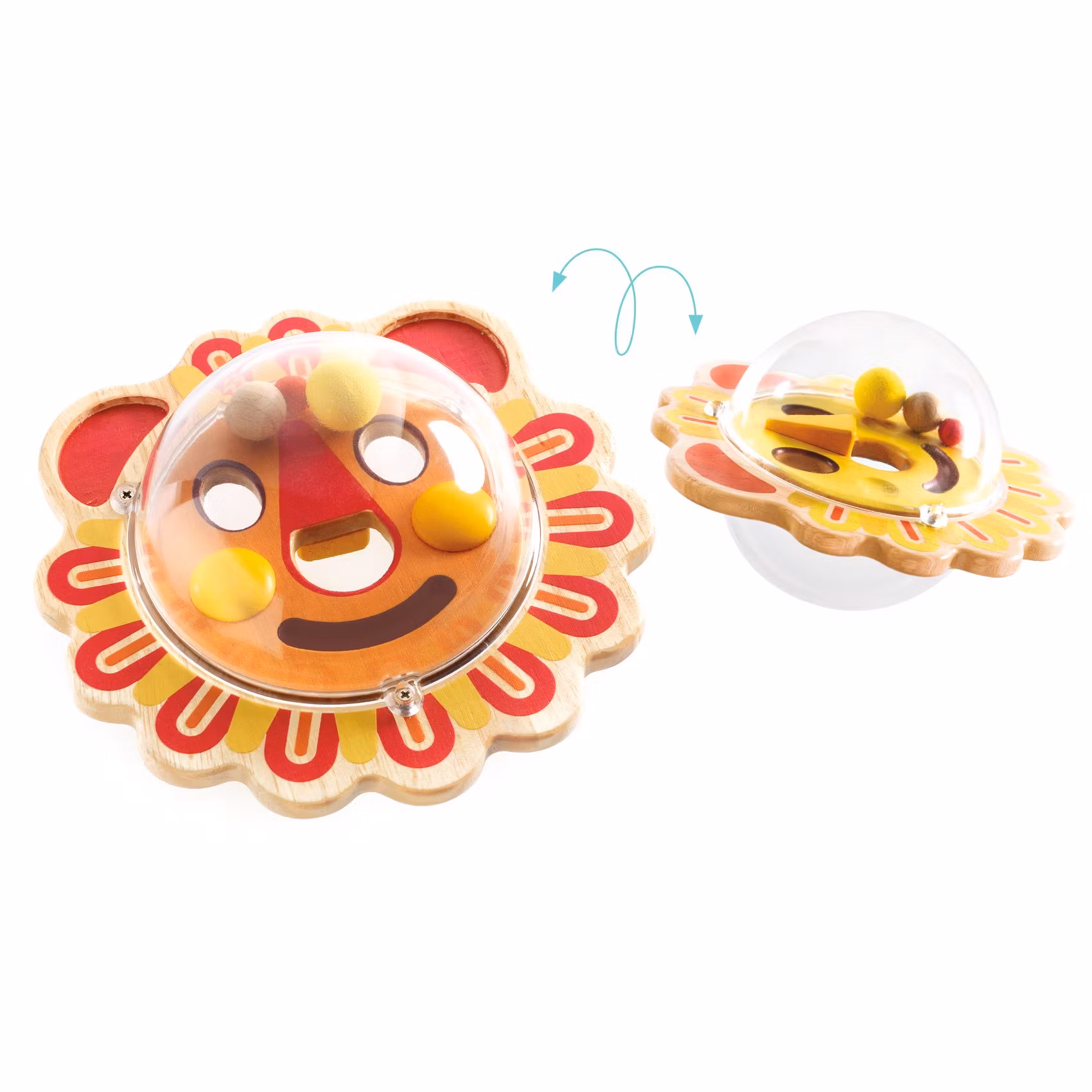 Innehåll: 1 babyleksak av trä och plast som innehåller 3 kulor av trä eller plast.