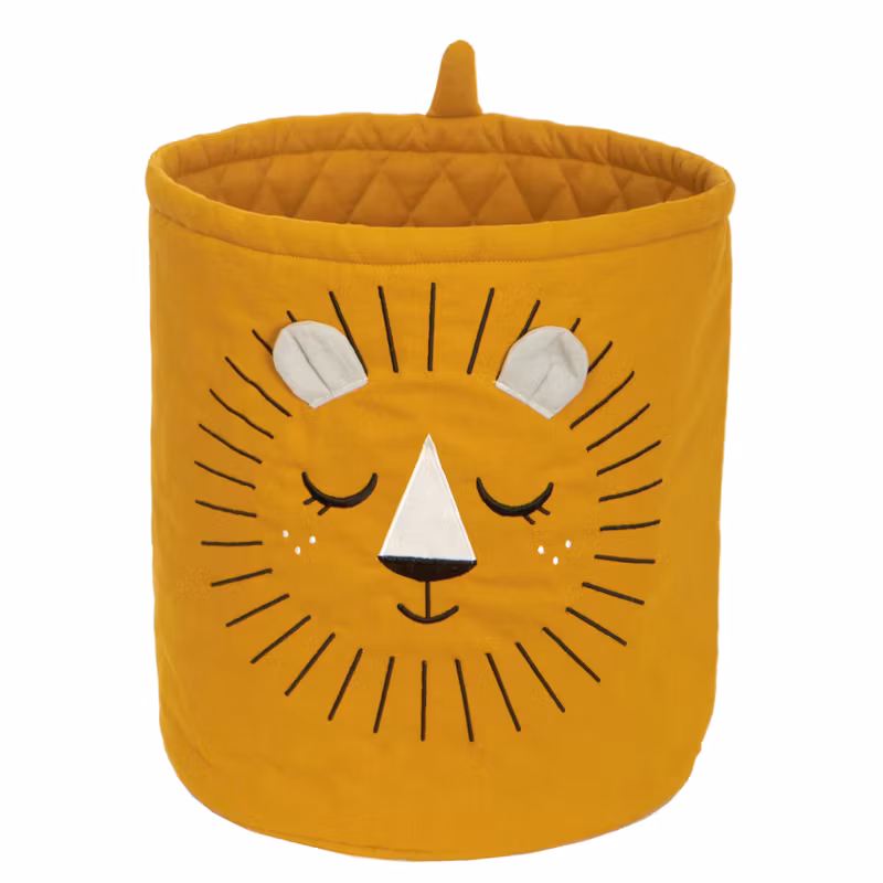 Charmig förvaringskorg för tvätt eller leksaker. Utformad som ett ståtligt och kanske lite blygt lejon. Sydd i ekologisk bomull och stoppad med polyester fiber. (Oeko-Tex Standard 100). Broderad design.