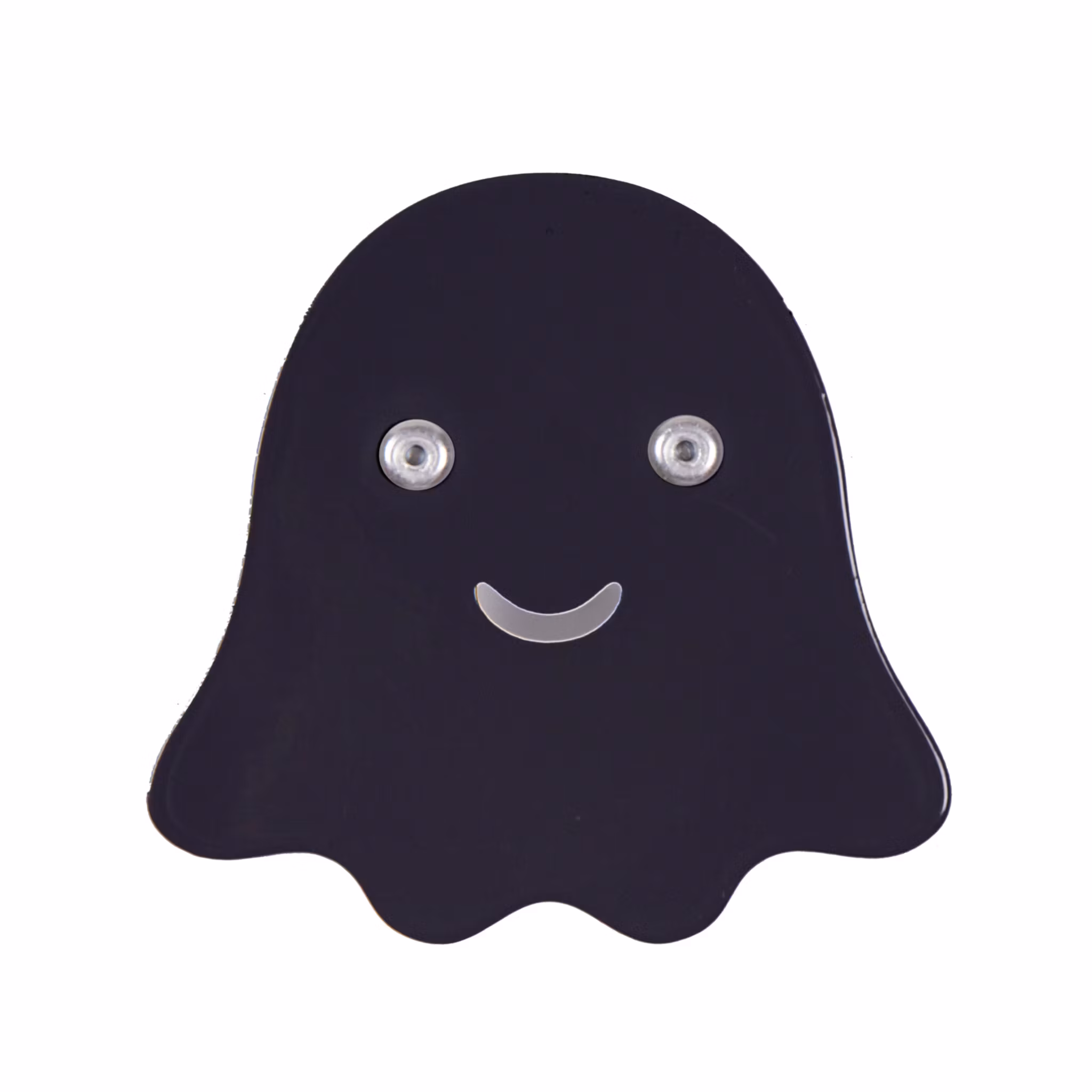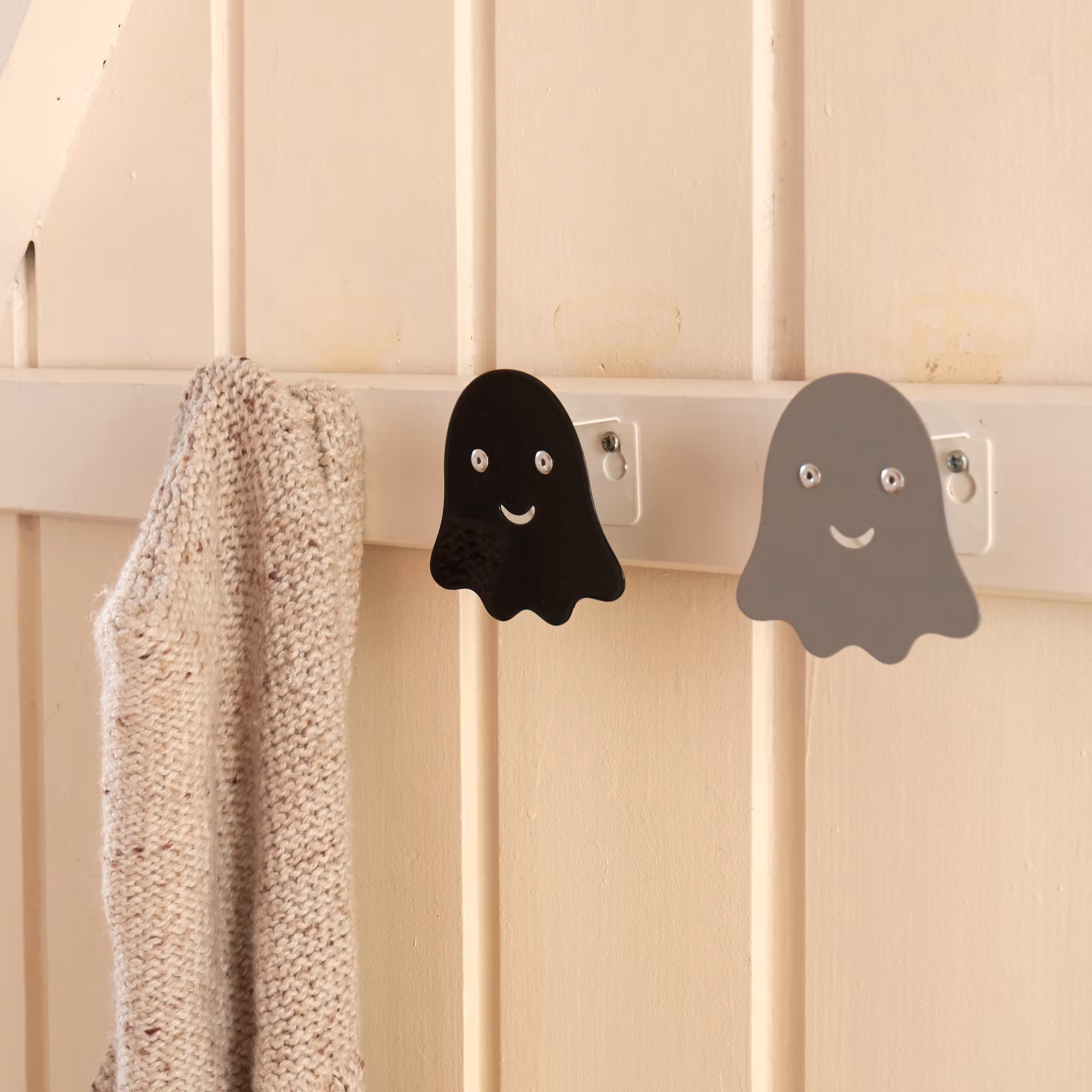 Fin krok i form av ett sött spöke som är gjort av stål och är pulverlackerad i häftigt svart. Torkas vid behov av med fuktig trasa.