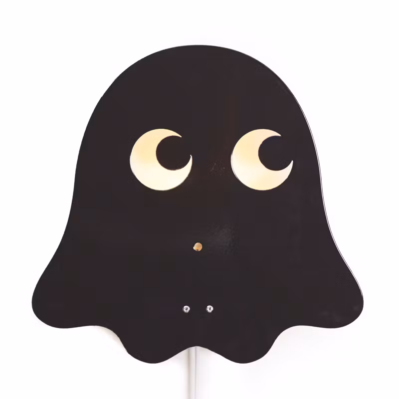 Häftig vägglampa i form av ett spöke. Gjord i stål och pulvermålat i svart. Pryder sin plats i vilket barnrum som helst.