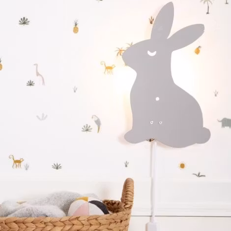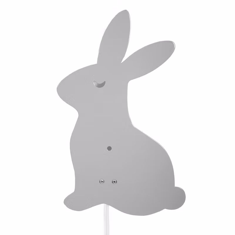 En snygg vägglampa för mysbelysning, tillverkad av pulverlackerat stål i form av en sittande hare eller kanin.