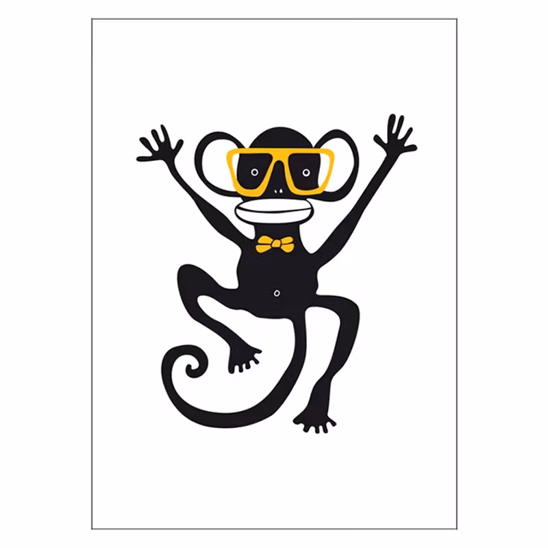 Rolig affisch med tryck i svart och vitt. Som en extra piff har motivet gula detaljer i glasögon och fluga. Rolig inredningsdetalj.