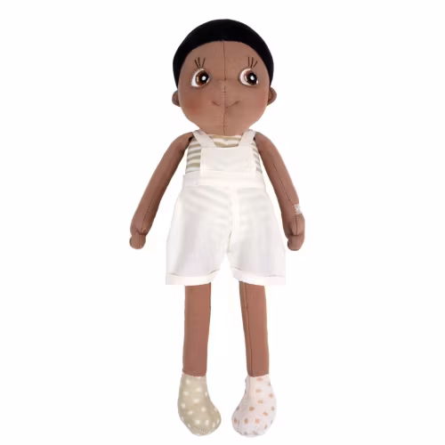 Du hittar Fern lekande vid en bäck. Han håller sig sval genom att bada i bäckar och tar skydd under de höga träden i skogen. Den här dockan är en mjuk, handgjord docka, tillverkad av ekologisk bomull. Han gillar att följa med dig för att utforska naturen och all dess skönhet. Fern känner sig också hemma i roliga och lekfulla miljöer. Denna mjuka docka är 35 cm hög, har mörk hy och svart hår. Rubens Barn är svenskdesignade, mjuka, handgjorda dockor av hög kvalitet, alla med glada, unika karaktärer. Rubens Barn är svenskdesignade, mjuka, handgjorda dockor av hög kvalitet, alla med glada, unika karaktärer. Rubens Barns dockor har roliga och vänliga personligheter eller berättelser för att stödja barn att vara kreativa, utforska känslor och utveckla empati. Rubens EcoBuds dockor är tillverkade av 100 % ekologisk bomull, certifierade enligt Organic Content Standard (OCS) och har en 100 % Global Recycled Standard (GRS) polyesterfyllning. PSST! Låt oss göra roliga dockkläder tillsammans! Inspireras av vår D.I.T Nature Edition! Rubens Barn är svenskdesignade och mjuka handgjorda dockor av hög kvalitet med syfte att hjälpa barn bli individer med medkänsla och självförtroende.