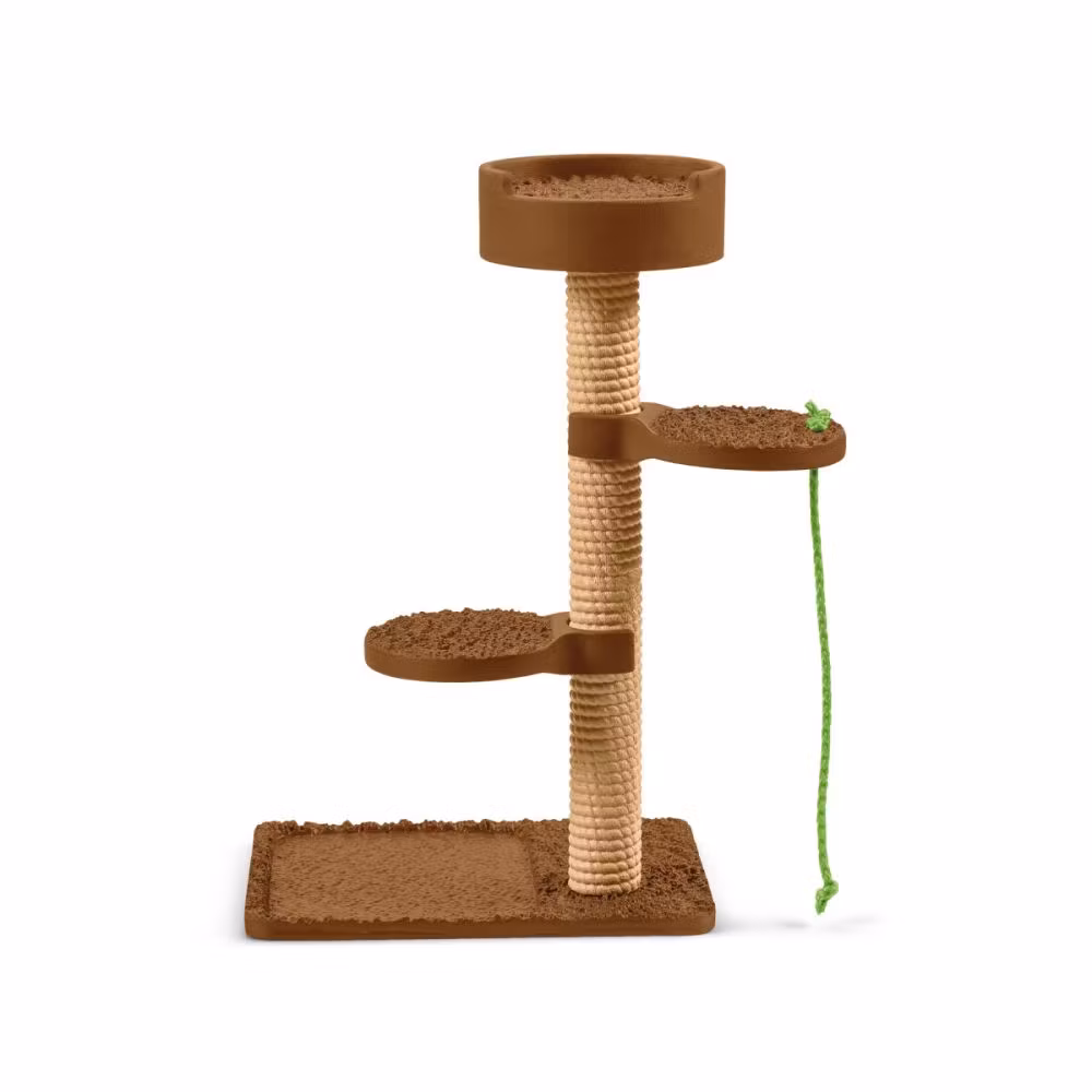 Klösträdet kan regleras och huset ställas upp var som helt. Setet innehåller tre gulliga katter och tillbehör.