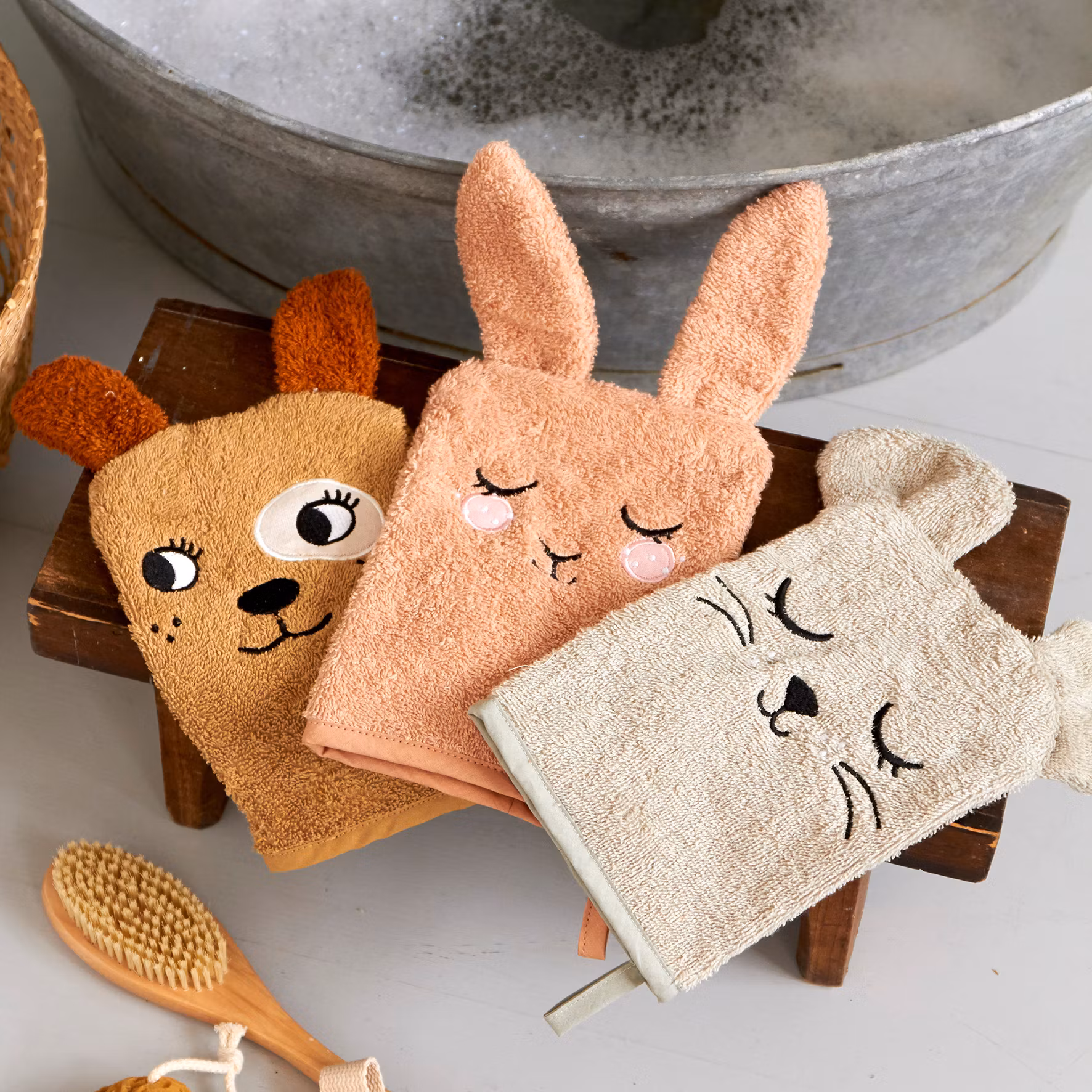 Roommate- WASH GLOVES - BUNNY, MOUSE, DOG set med 3