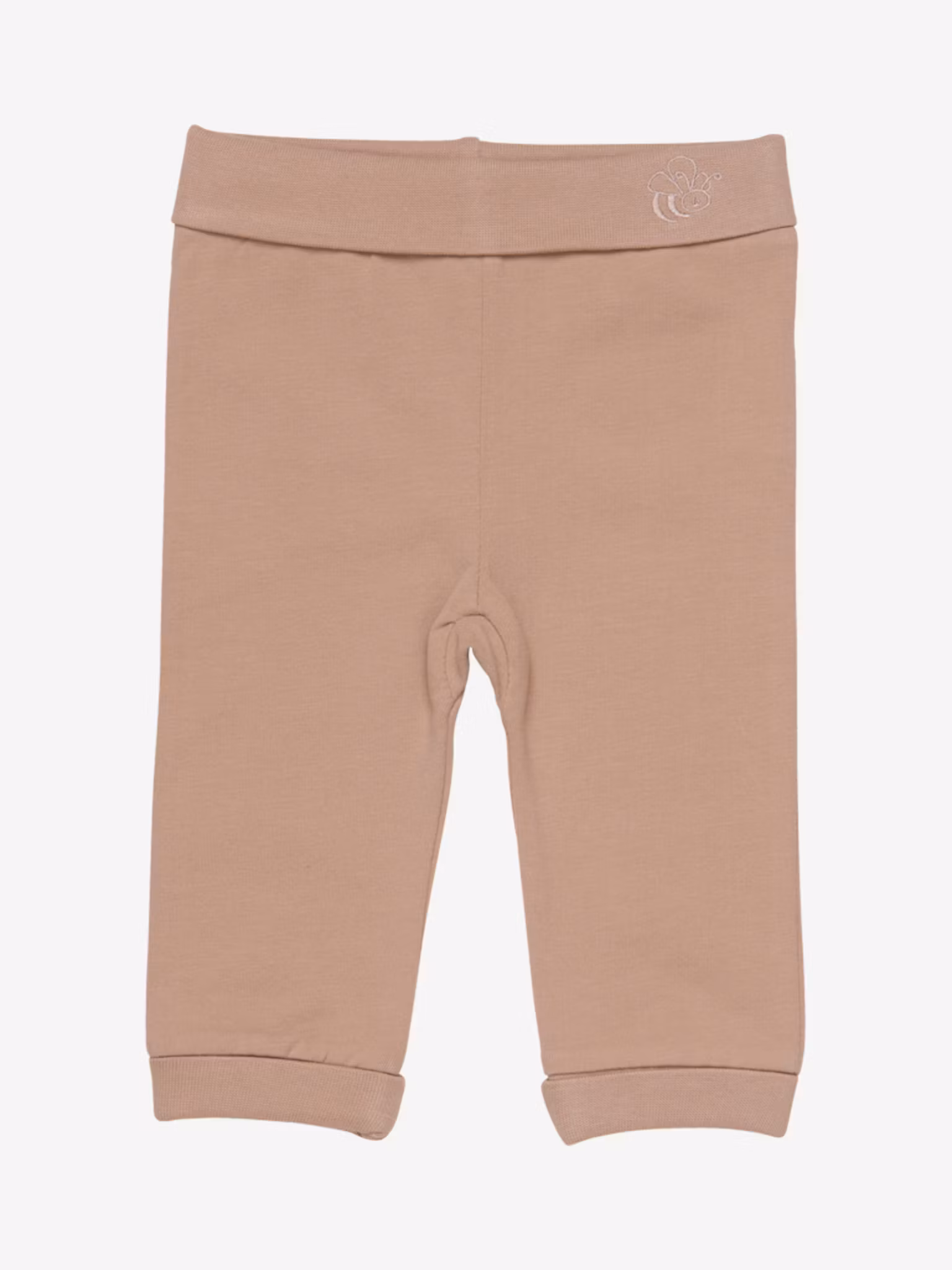 Mjuka och elastiska babybyxor med ribb vid anklarna och ett mjukt ribbband i midjan.