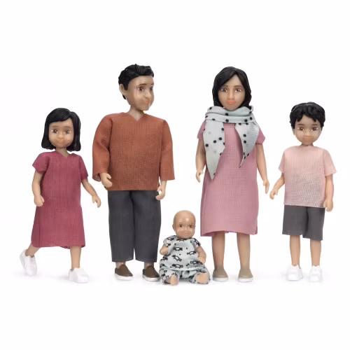 Dockset från Lundby med fem olika dockor, två vuxna och tre barn varav ett är en liten bebis. Lundbys fina dockhusdockor har alla detaljer man kan önska sig. Dockorna kan röra huvud, armar och ben.