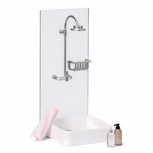 Dags för en lång, varm dusch! Med det här setet kan familjen Lundby ta en skön dusch i den fina duschkabinen med takdusch. I setet ingår förutom duschkabinen också en mjuk handduk, en schampoflaska och en tvål att tvätta sig med.