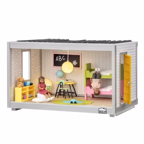 Skapa ditt eget drömhus med Lundby dockhusrum! Är det en lägenhet i ett höghus, en liten stuga eller en undervåning till ditt Lundby dockskåp? Skapa rum för lek genom att bygga ihop flera moduler på bredden eller höjden. Bara fantasin sätter gränserna! Dockskåpsmodulerna finns i tre olika storlekar och har vändbara väggar med vackra tapeter från Sandberg Wallpaper. Du kan också ta bort väggarna helt, för att kunna leka i huset från flera håll. Komplettera gärna med trappan och de batteridrivna LED-lamporna från Lundby, som ger din alldeles egna dockskåpskombination en mysig hemtrevnad! Möbler och dockskåp köpes separat. Endast batteridriven LED belysning fungerar i detta skåp. Lundbys fina dockhus har alla detaljer man kan önska sig; vackra tapeter från Sandberg Wallpaper och mängder med inredning & tillbehör. Vår dockhusbelysning är försedda med batteridrivna LED-lampor och inbyggd timer. Med Lundbys dockhusmoduler kan dockskåpet byggas ut och byggas på för att skapa din personliga värld av dockskåp. Lundby - svenskdesignade, populära dockhus i olika modeller. Barnet kan skapa sin egen värld med dockhusen, dockhusdockorna av olika etnicitet och med olika funktionsvarianter, de detaljerade dockhusmöblerna, belysningen och de andra dockhustillbehören till Lundby.