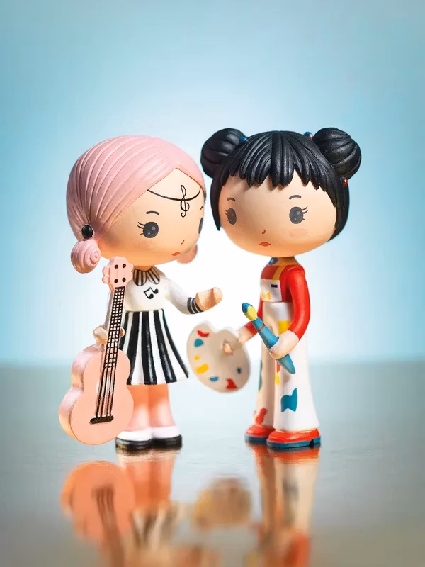 En söt rosa gitarr och en maracas medföljer figurerna.