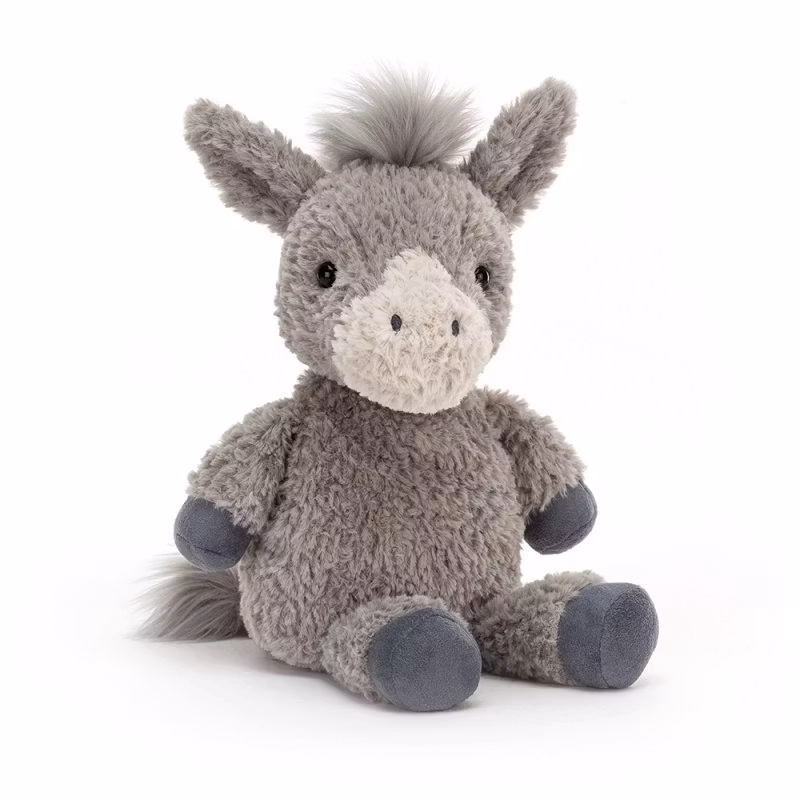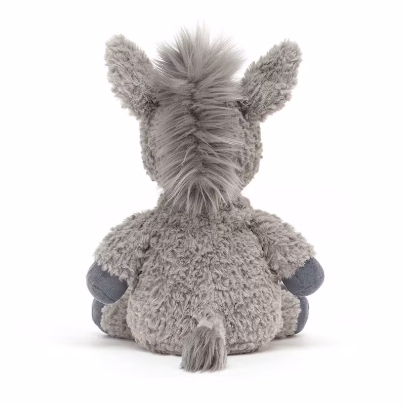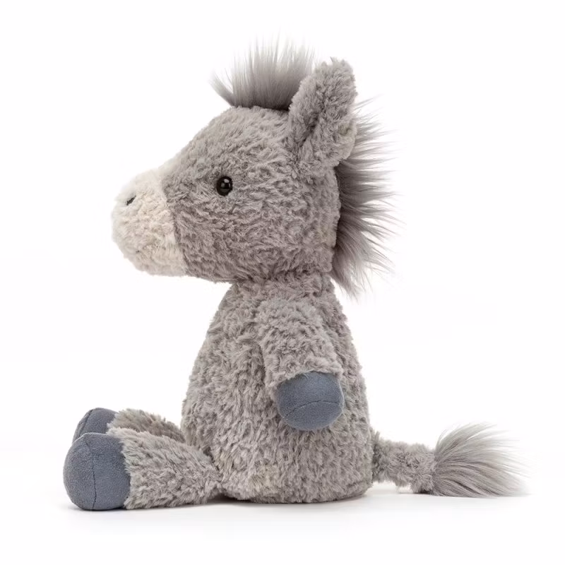 En söt och gosigt knubbig åsna med långa viftande öron. Med lite rufsig och gosig päls i snyggt grått, en mjuk och gosig mule i en ljusare nyans, lena hovar i en elegant blågrå nyans samt en silkeslen och fluffig man och svanstofs. En glad och kramgo liten kompis med pigg uppsyn och en nyfiken glimt i ögonen. Handtvättas vid behov.