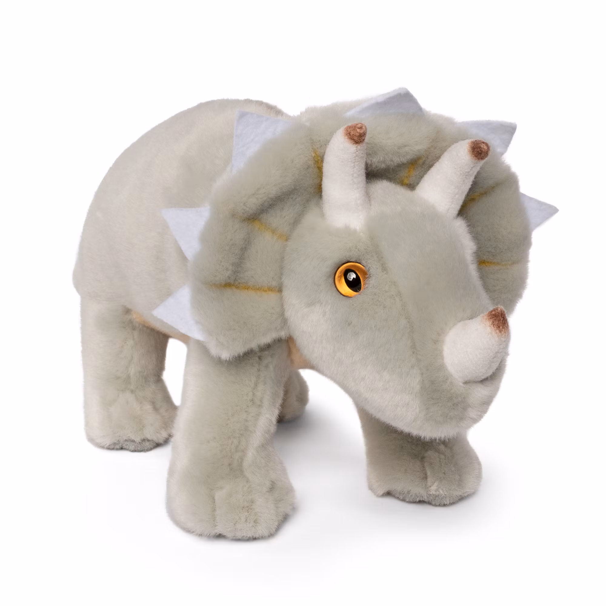 En mjuk och gosig men också vildsint Triceratops med intensiva ögon och många snygga detaljer.