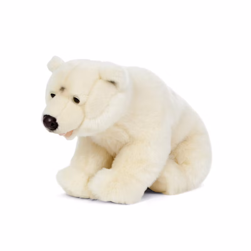 En stor och snygg isbjörn att älska. Isbjörnen är sittande och härligt gosig samt mycket naturtrogen med sin svarta nos och mörka ögon. Bör ej sova i samma säng som de allra yngsta.