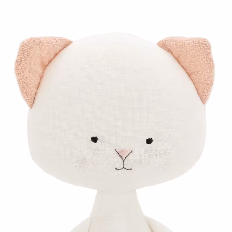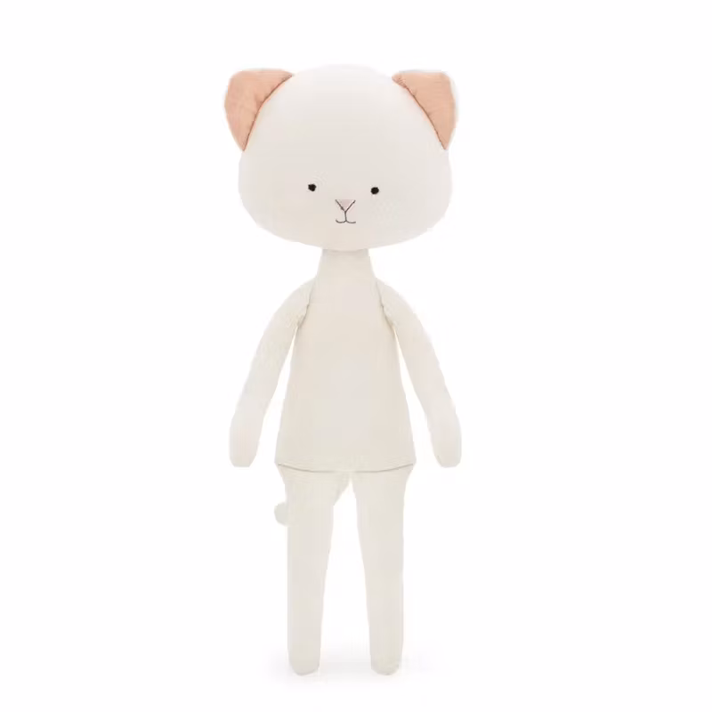 En mjuk docka med en charmigt enkel design, i form av en bedårande vit katt, klädd i en fantastisk rosa stjärtfena så att dockan ser ut som en sjöjungfru.