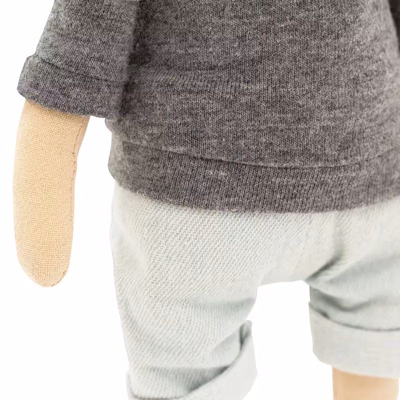 Dockan är tillverkad av 100% bomull och de avtagbara kläderna av 100% polyester för att tåla mer.