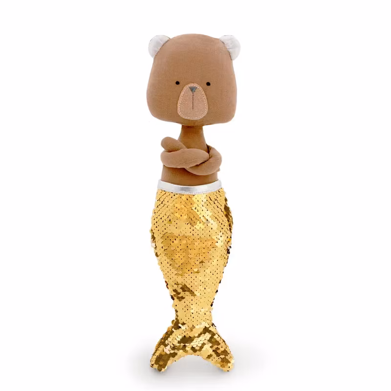 I paketet ingår dessutom en gåva i form av en fantastisk guldglänsande stjärtfena så att dockan kan förvandlas till en sjöjungfru!