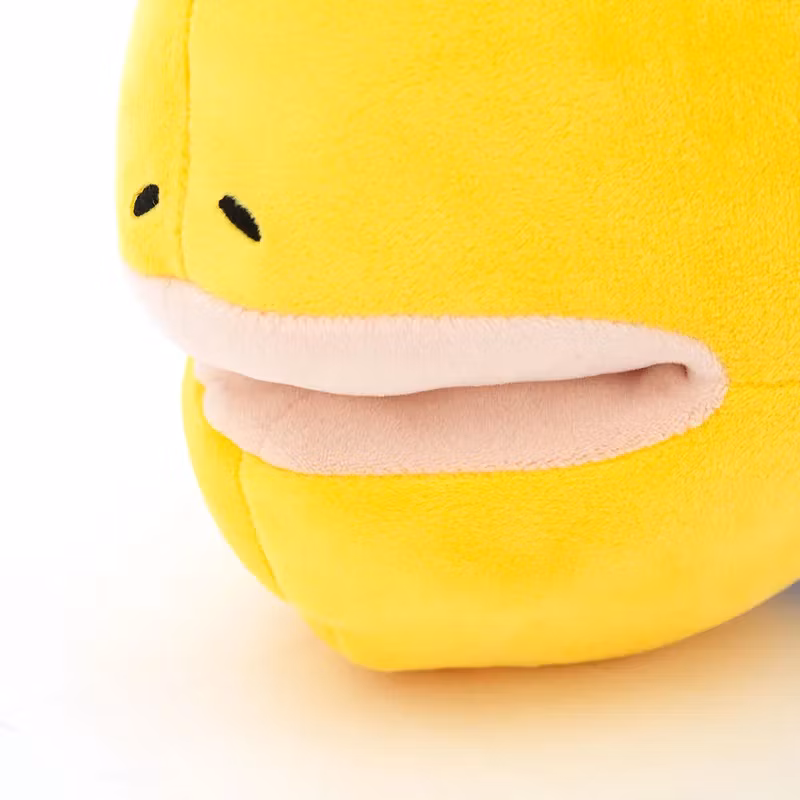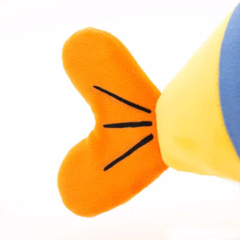 Fisken har ett vänligt uttryck med halvslutna ögon och en härligt gosig kropp som inbjuder till kramar och lek.