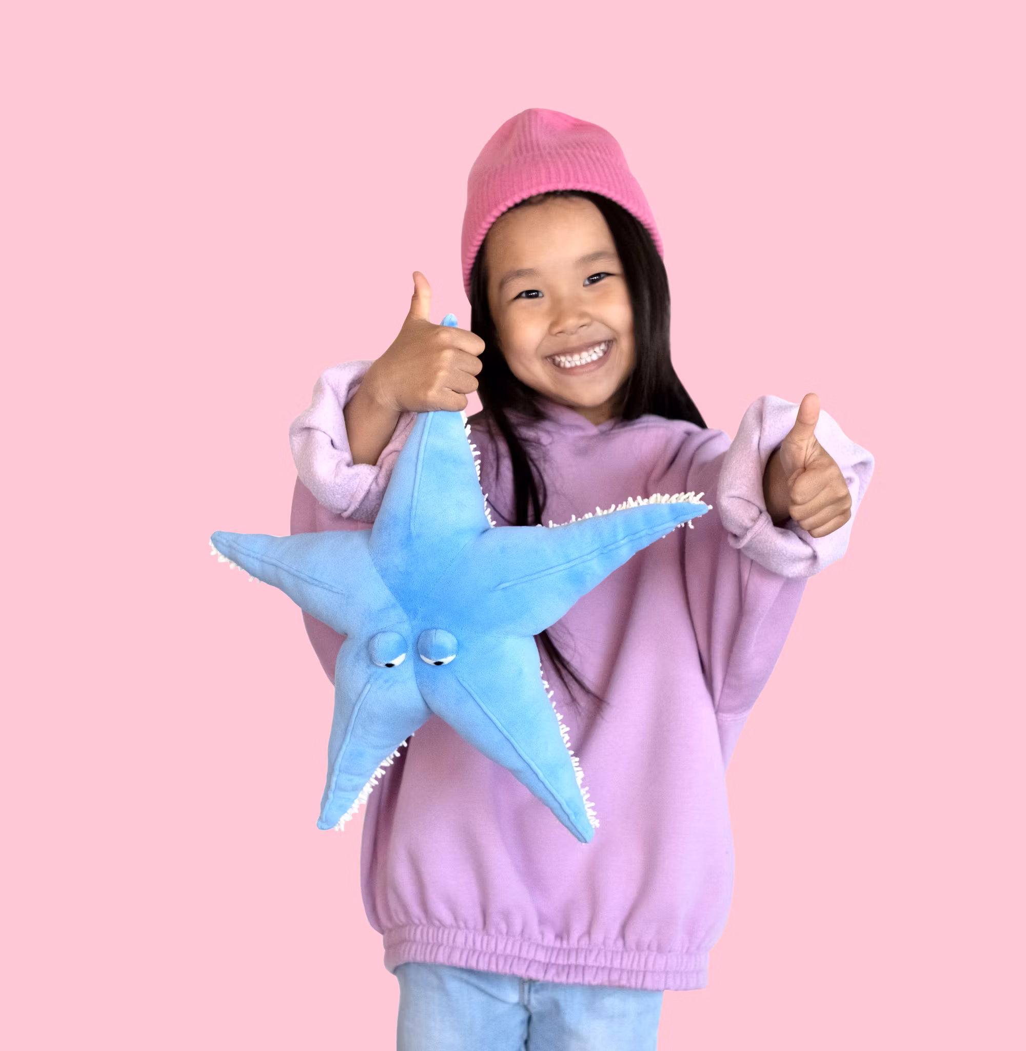 En cool sjöstjärna i ett lite mindre format, med aningen sömniga ögon som blickar framåt, snyggt sydd i ett super-mjukt blått tyg och med ett roligt strukturerat tyg på undersidan. Som att krama en gosig del av havet! Tillverkad i ett super-mjukt stretchtyg av 100% polyester och fylld med en speciell polyester fiber som ger maximal mjukhet, med hög kvalitet i både material och säkerhet. Kan handtvättas och hängtorkas vid behov för att hålla den fräsch.