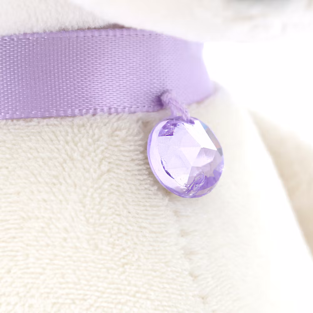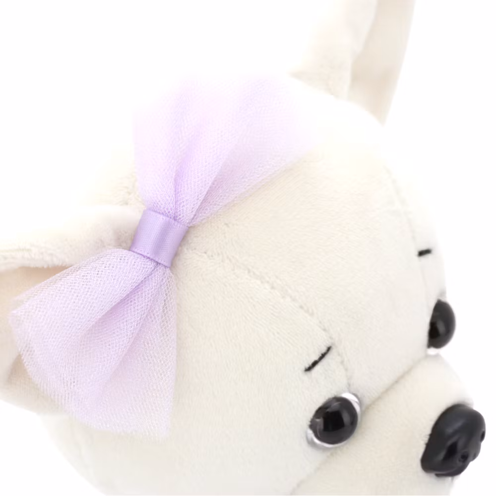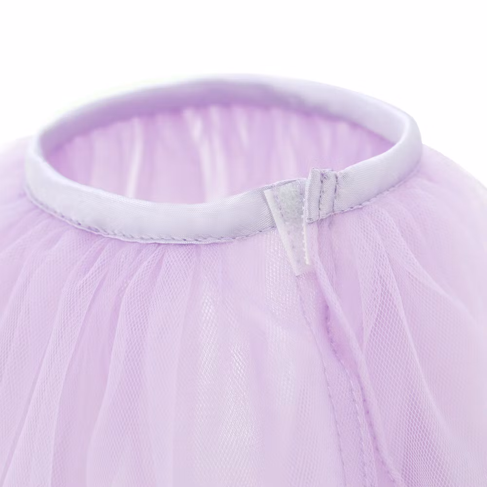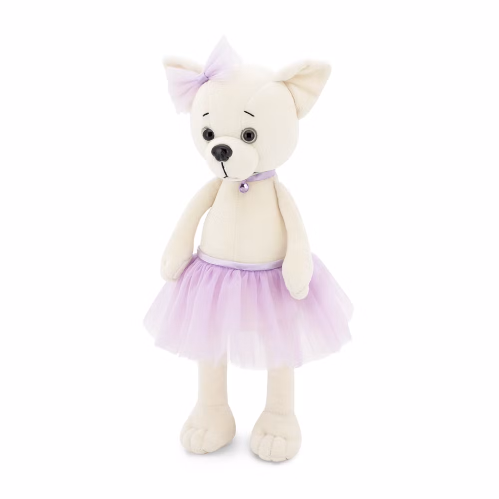 Klädd i en söt kjol av ljuslila organza med ett skimrande lila band i midjan, ett halsband dekorerat med en facetterad lila sten, samt en matchande lila rosett vid örat. Kläderna och halsbandet är avtagbara och passar alla hundar i serien.