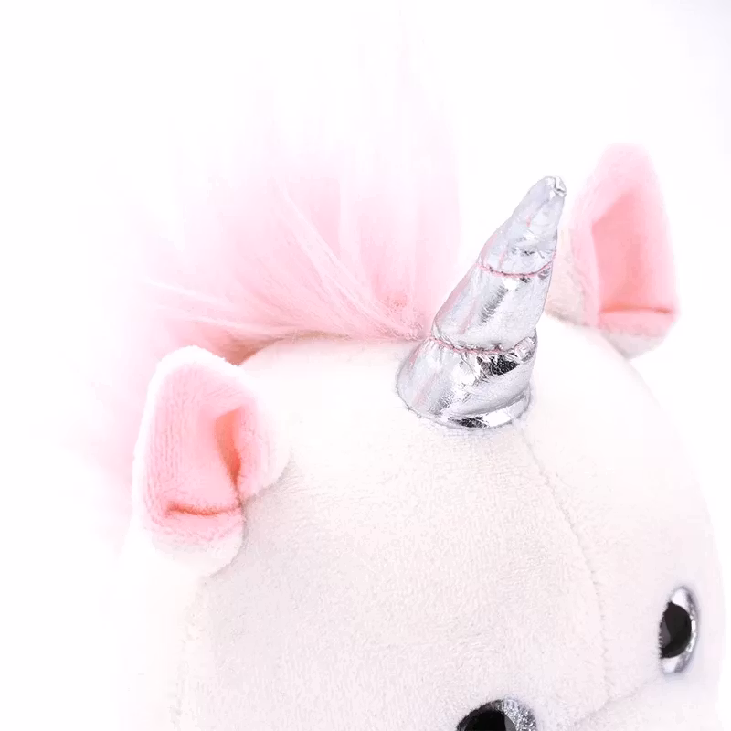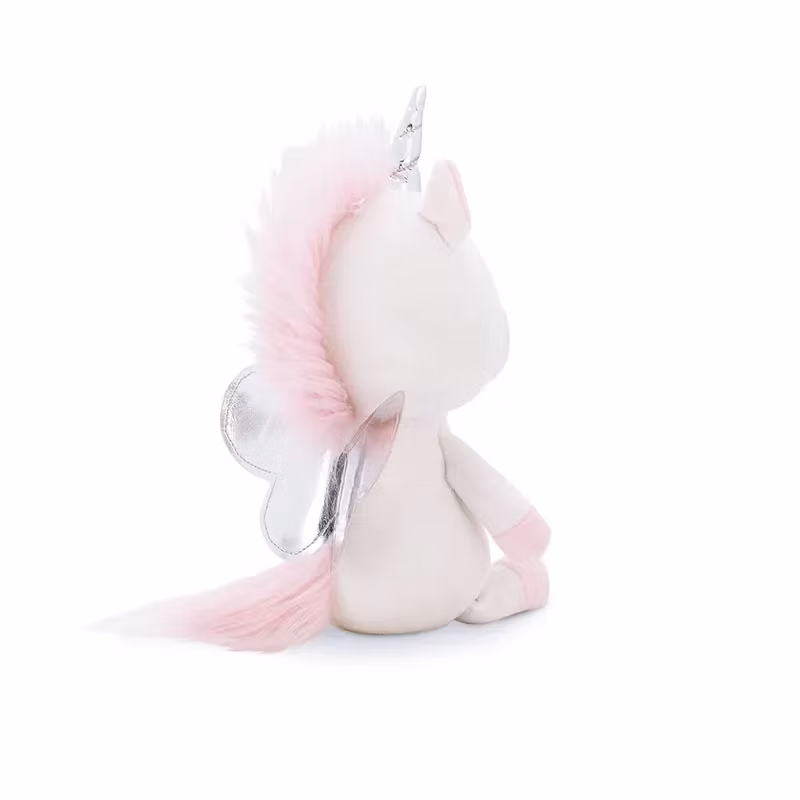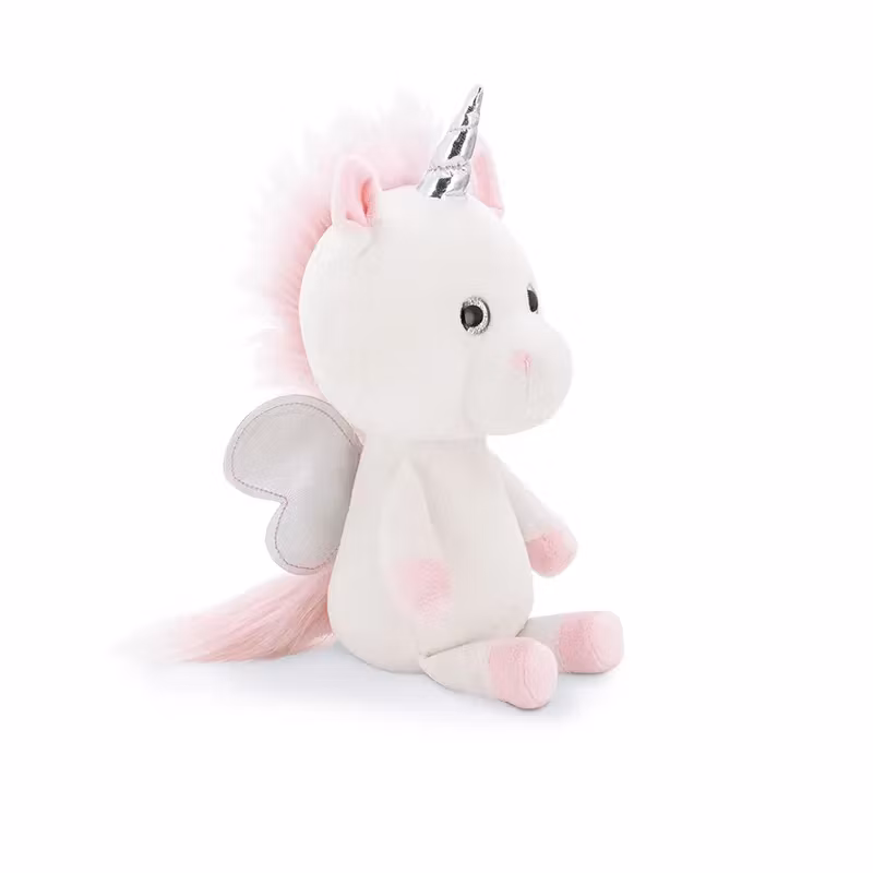 Ett bedårande litet mjukdjur med glittrande ögon som vill sprida glädje. Denna söta lilla enhörning är inte bara gosig utan också berikad med fler taktila material i de silverglänsande vingarna och hornet, samt den fluffiga manen och svansen.