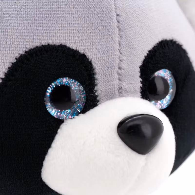 Ett bedårande litet mjukdjur med glittrande ögon som vill sprida glädje. Denna söta lilla tvättbjörn är härligt gosig och den fluffiga pälsen på bröstet och i öronen är härligt taktil.