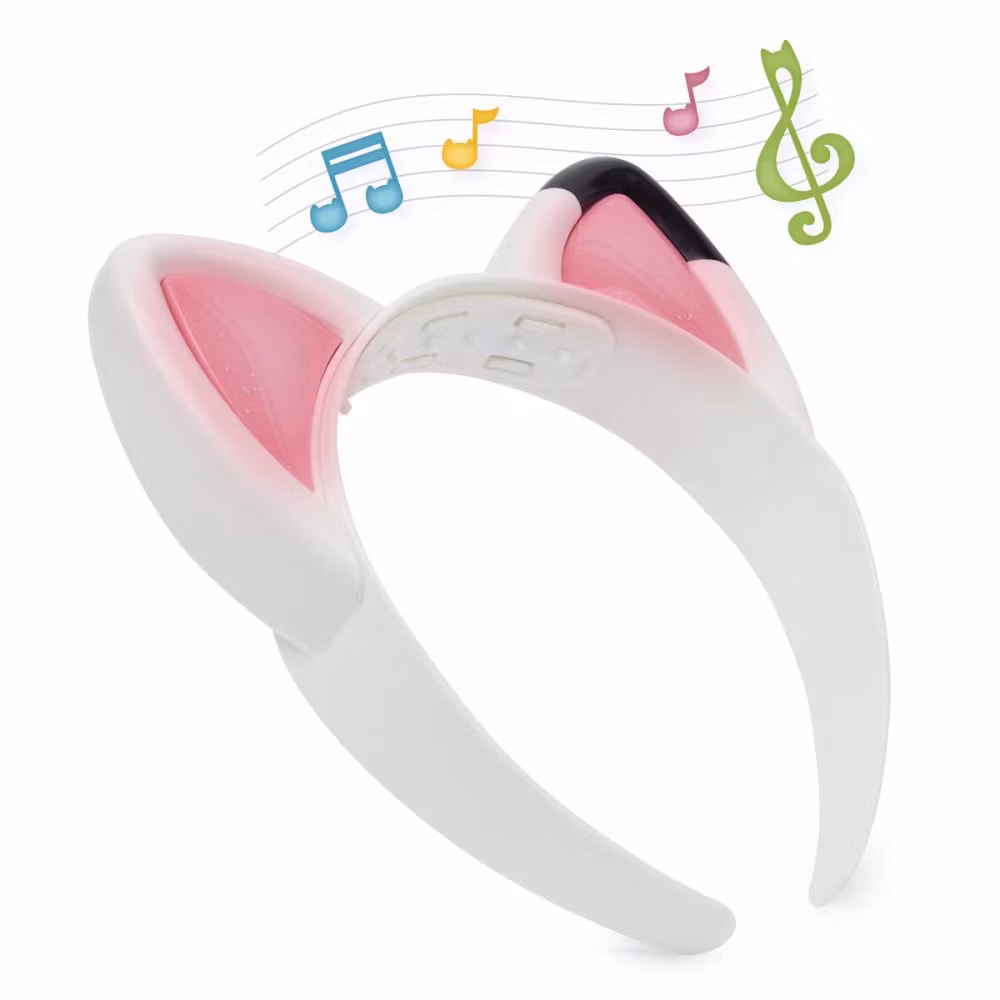 Gå in i mjau-läge genom att trycka på båda öronen på samma gång för pulserande ljus och kattastiskt jamande. Magical Musical Ears är det perfekta tillbehöret för att göra det minnesvärda krymp-mig-ögonblicket från serien levande.G