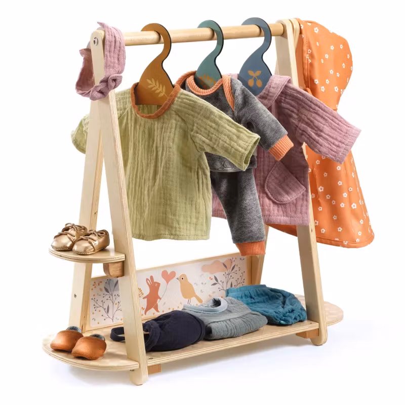 Djeco- Pomea Large Clothes Rack, 3 Hangers
