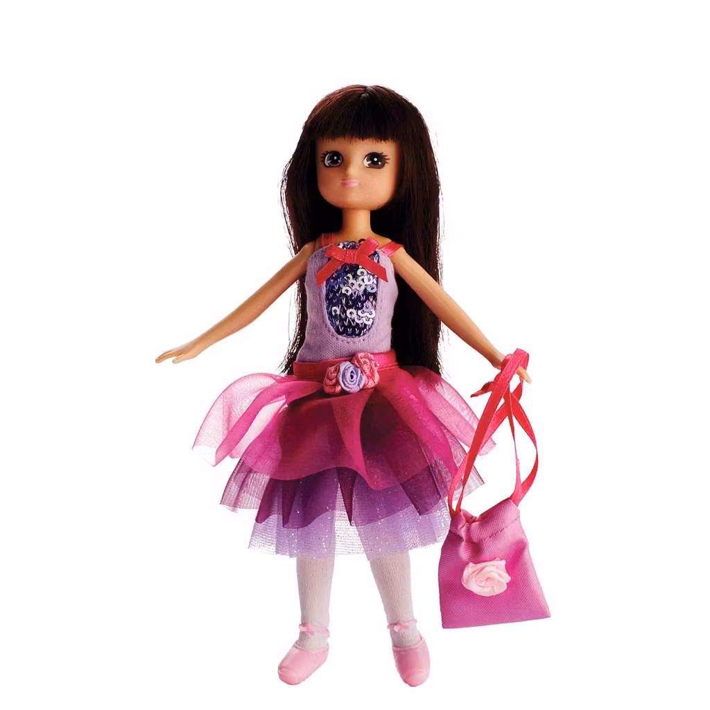 Söt docka med detaljerade kläder för balett-uppträdande.