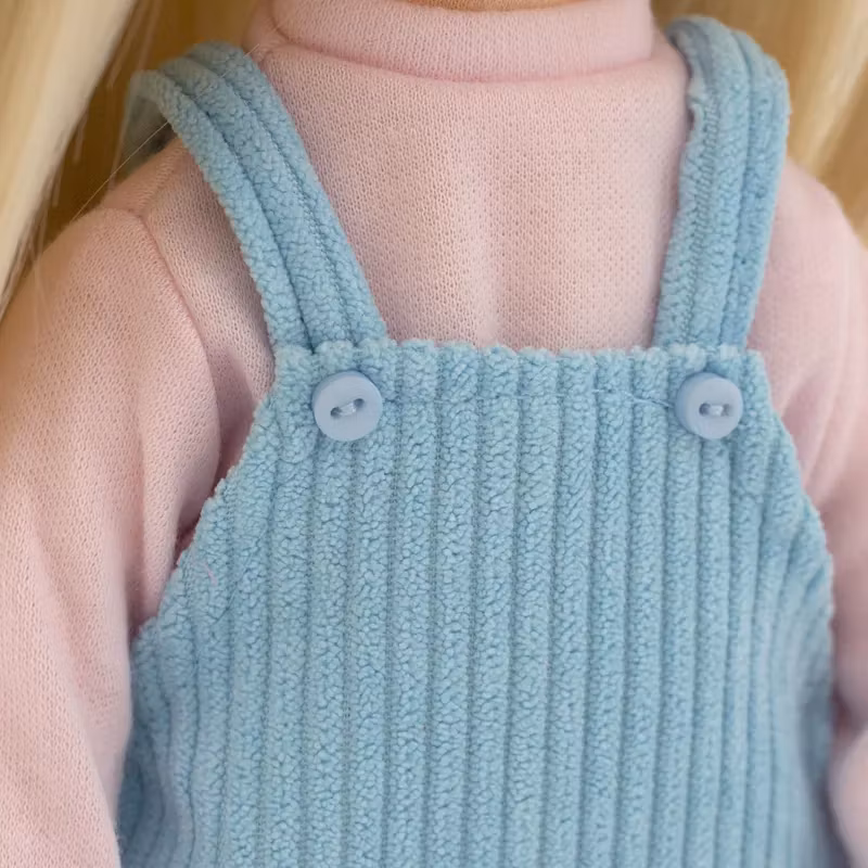Både kläderna och skorna går att ta av och passar alla dockor i serien. Dockans ansikte är konstnärligt skapat och utfört med digitala tryck på tyget för att säkerställa lång hållbarhet samt ge karaktären uttrycksfulla och förtjusande ansiktsdrag.