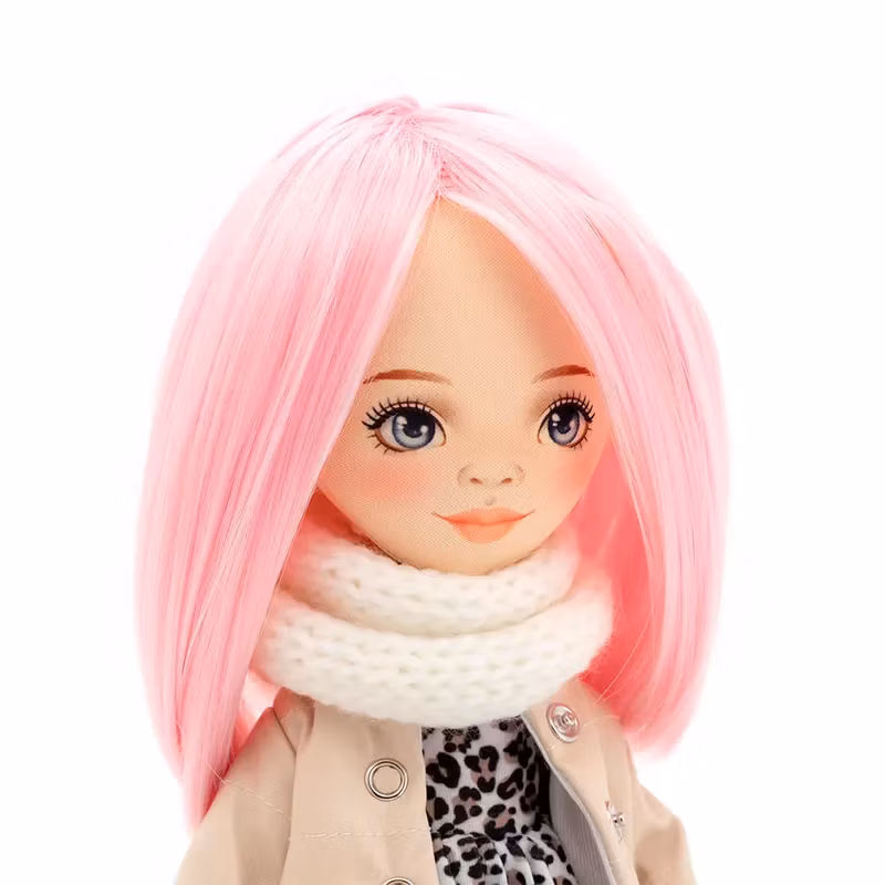 En elegant handgjord docka med axellångt rosa hår och vackra gråblå ögon i ett ansikte som utstrålar karaktär. Det glänsande håret är av premium kvalitet och kan formas med hjälp av till exempel locktång, så det är bara att leka stylist och experimentera med olika frisyrer och stilar!