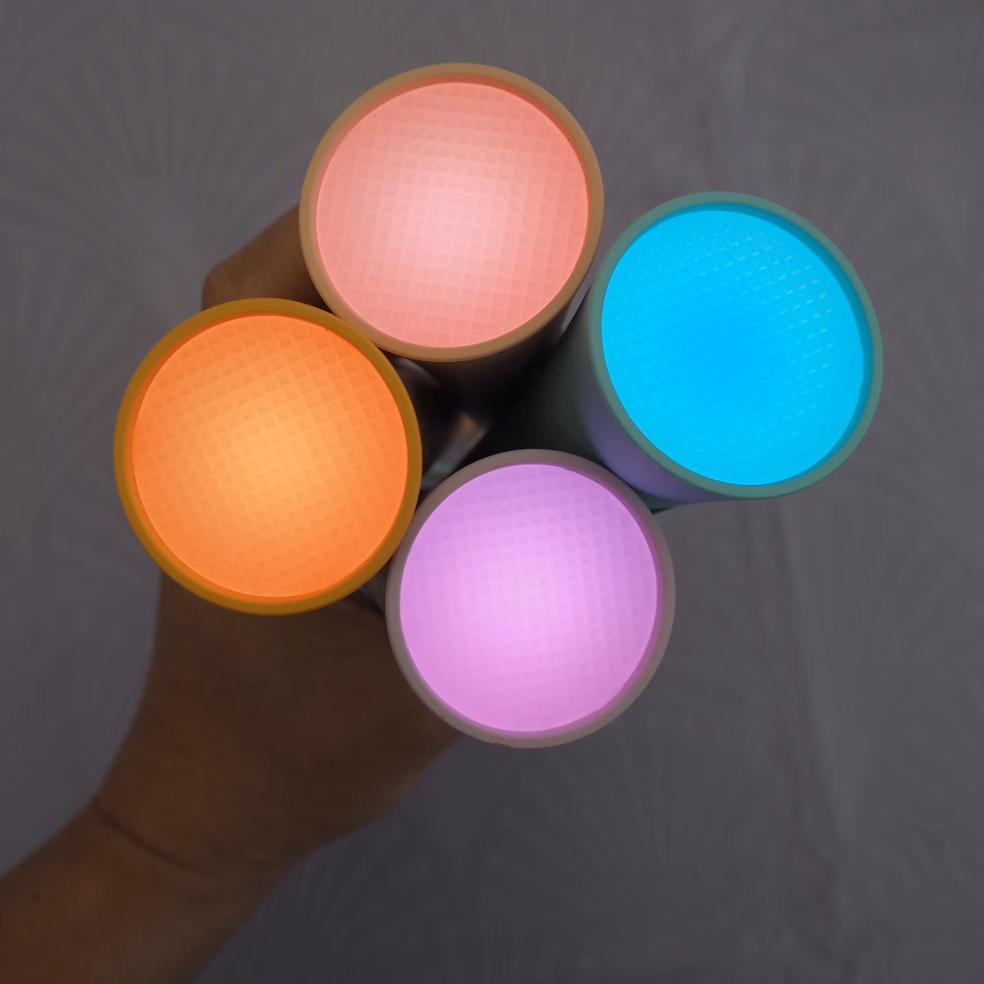 Använd Lalarma-knappen för att dimma ljuset upp eller ner, byta färg på ljuset samt tända och släcka ficklampan.