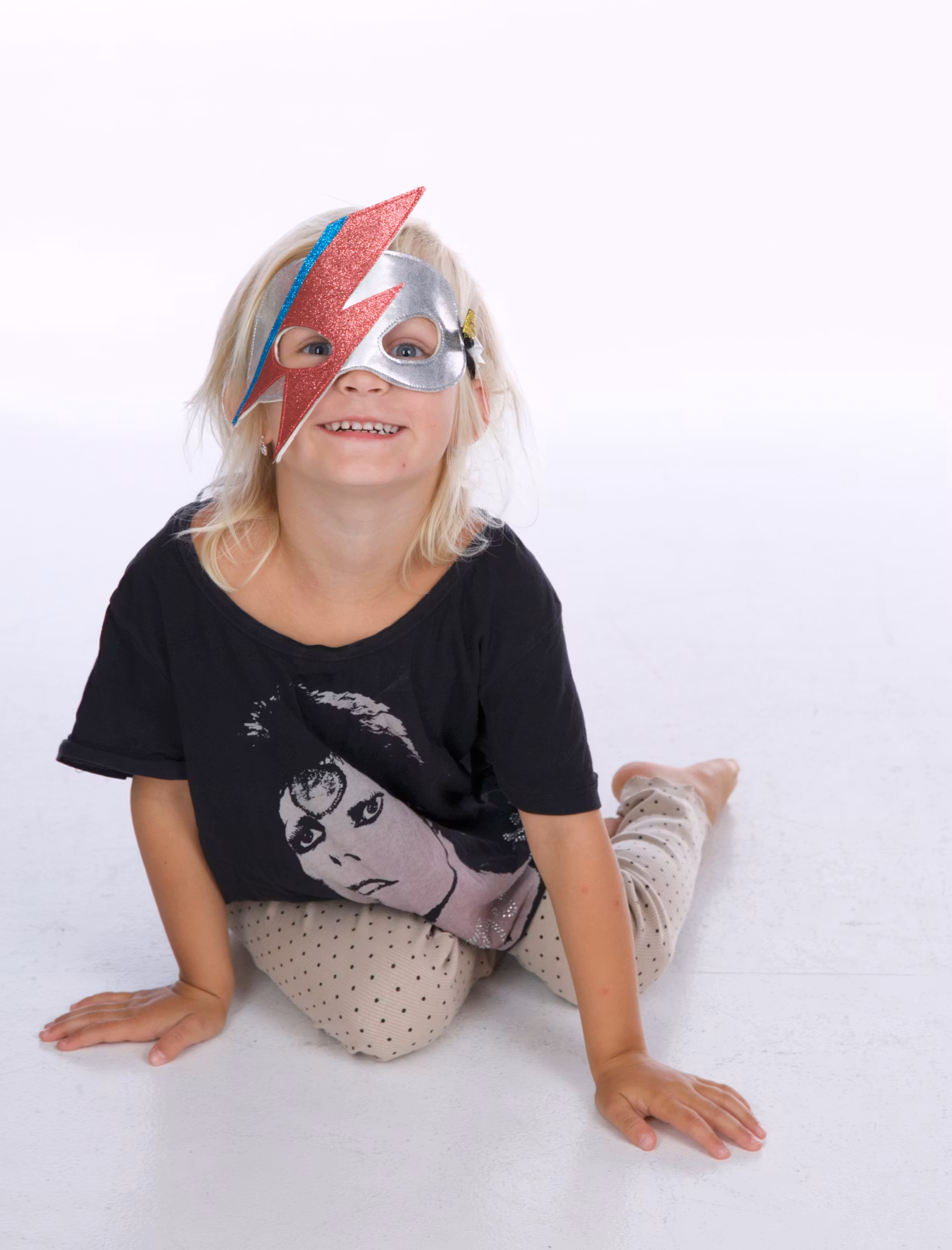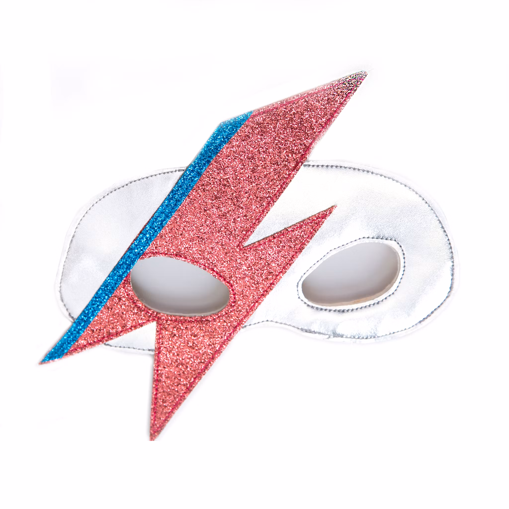 När du ska klä ut dig till en klassisk rock-ikon är denna masken ett bra val - tillverkad av Australiensisk merinoull (framtagen utan att utsätta fåren för grymheter), veganskt läder och dekorerad med miljövänligt glitter. Masken kliar inte och har ett 1 cm brett band med gummiband halva vägen samt långa ändar som du kan knyta för att justera passformen.