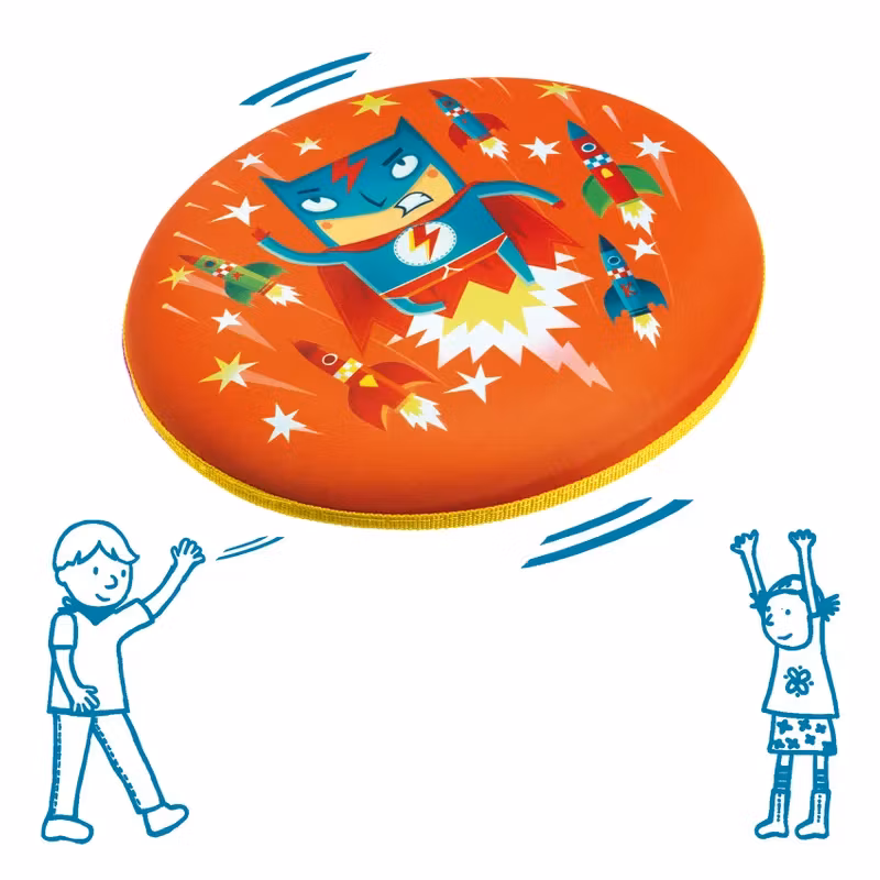 En ny och kul typ av "frisbee" i ett mjukt och flexibelt foam material som också är vattentåligt.