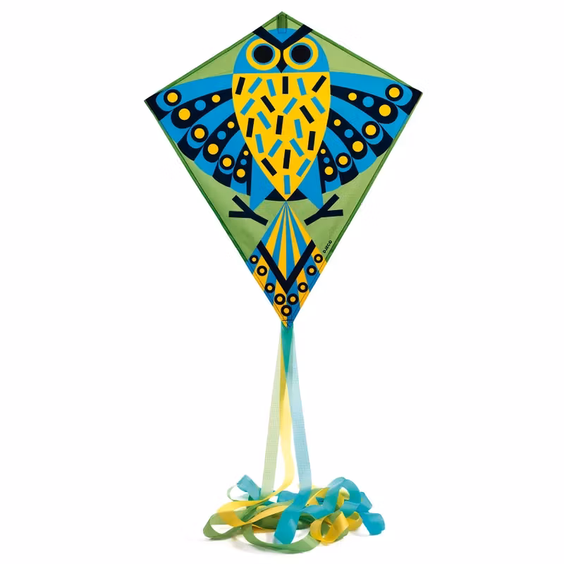 Vackert illustrerad drake med läckert ugglemotiv. Enkel att sätta ihop: pop-up funktion samt en stödpinne att fästa och en lina att knyta fast.